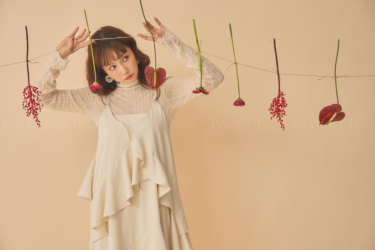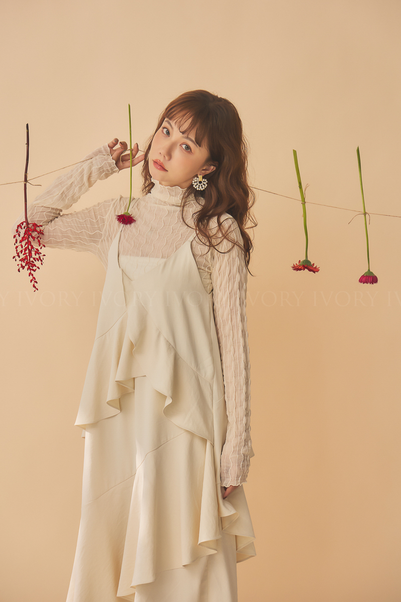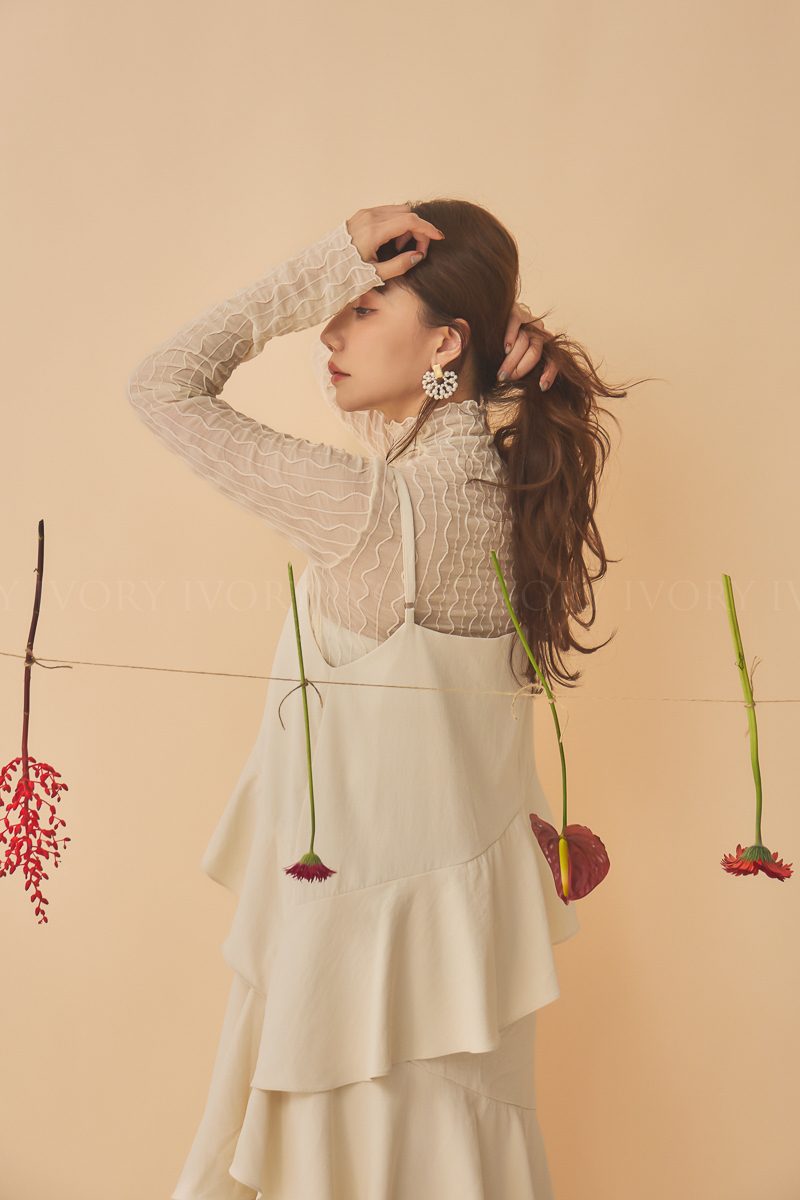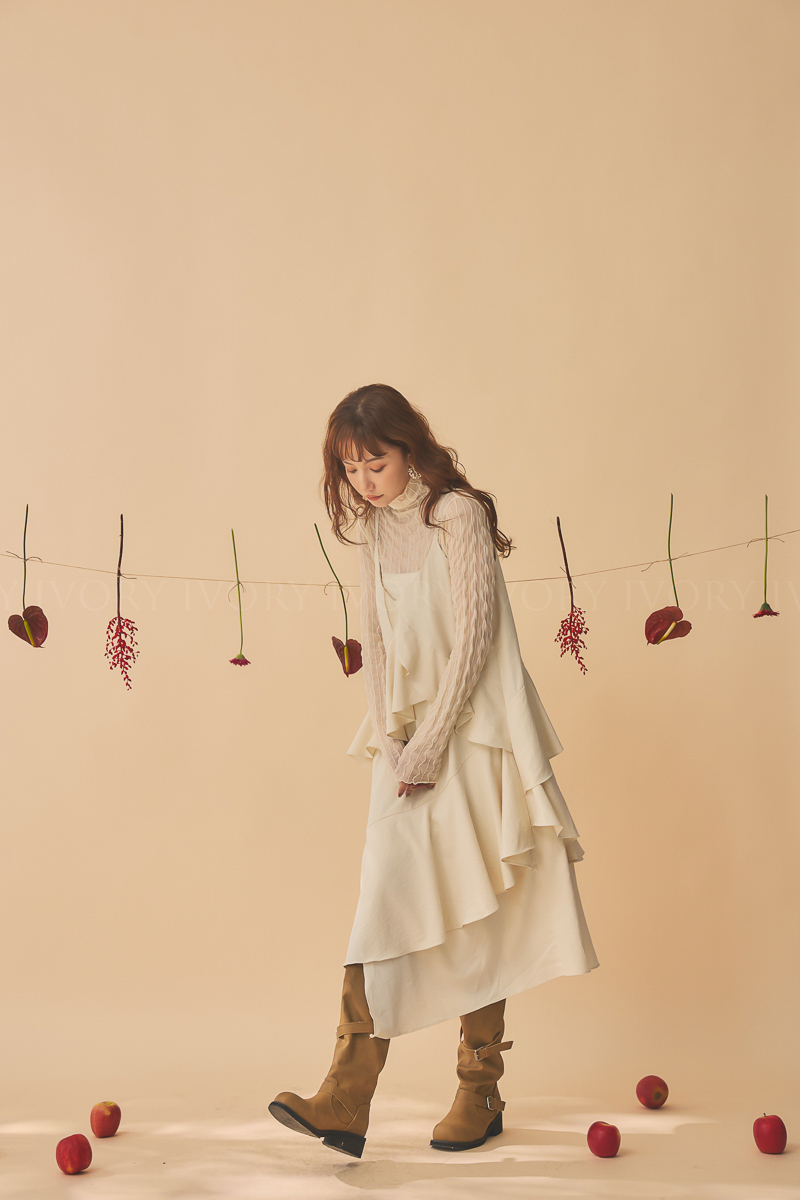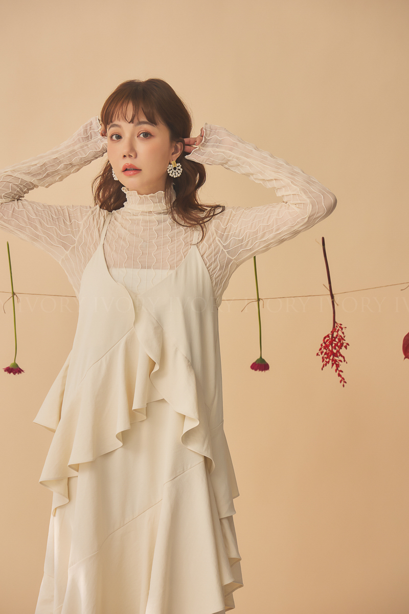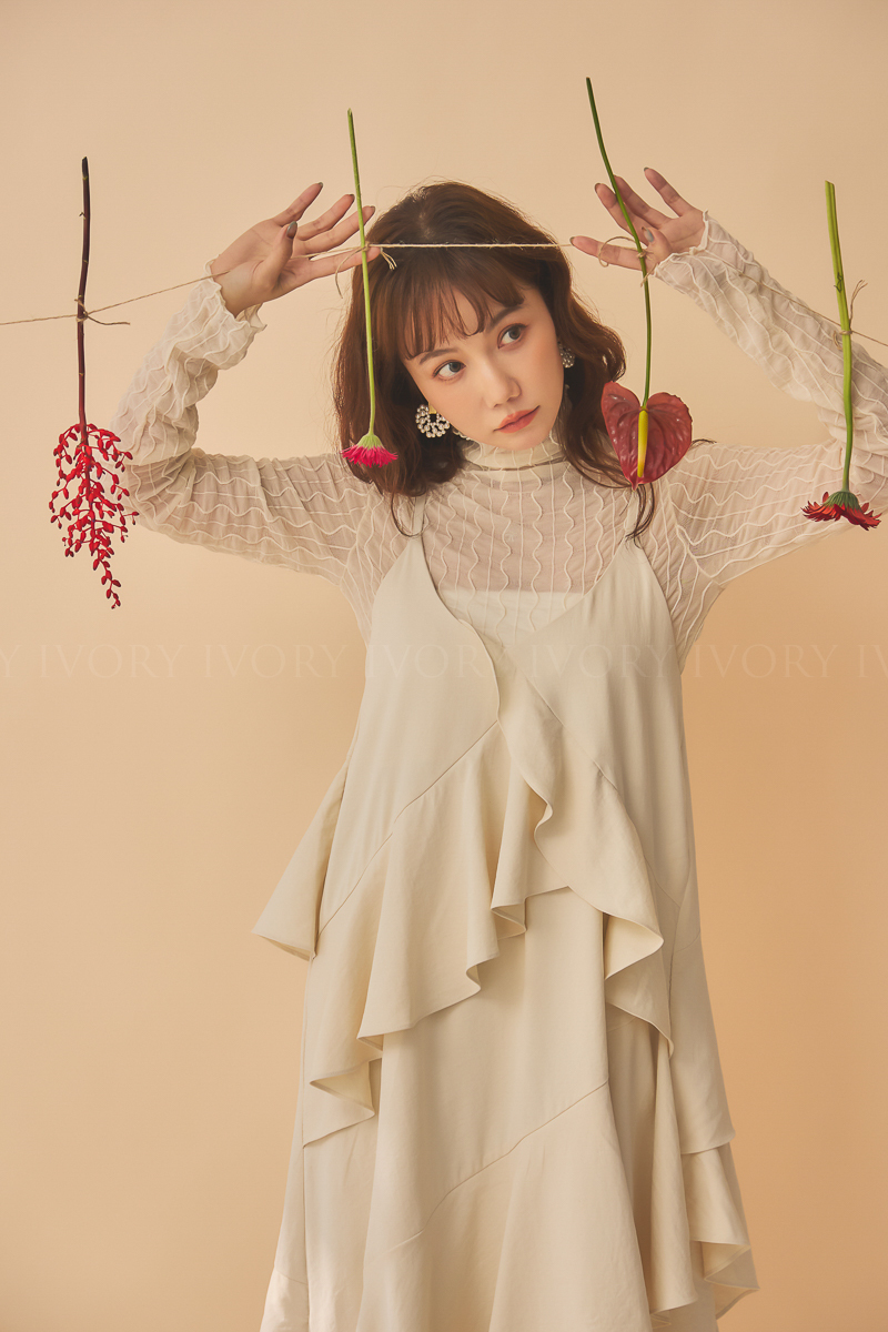 Q51050日系浪漫感荷葉蛋糕斜擺細肩長洋