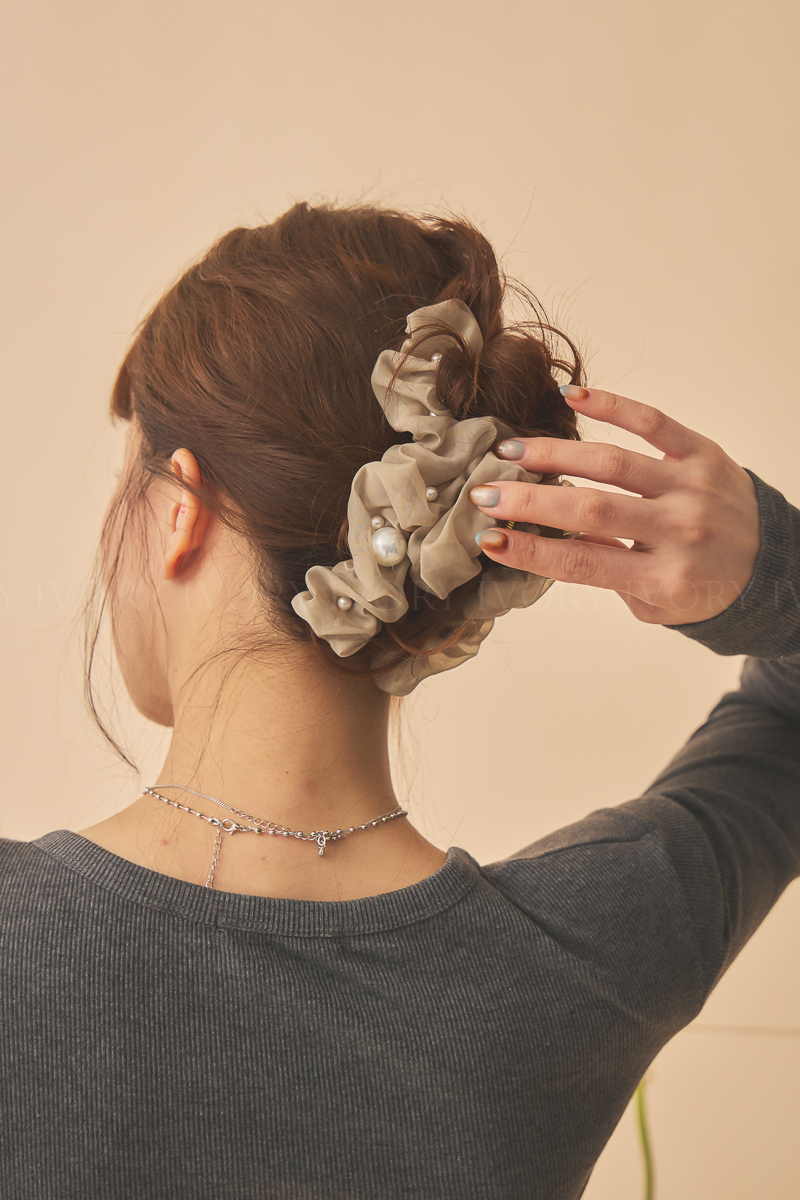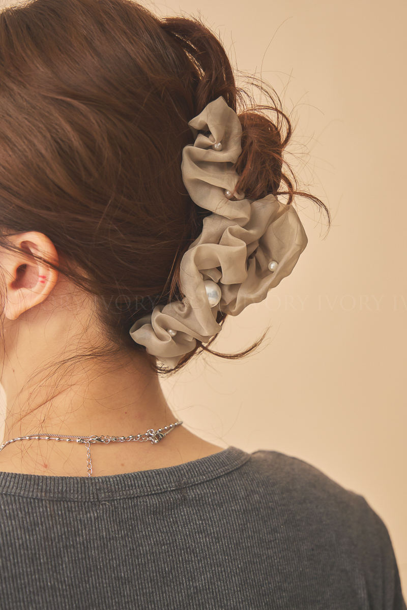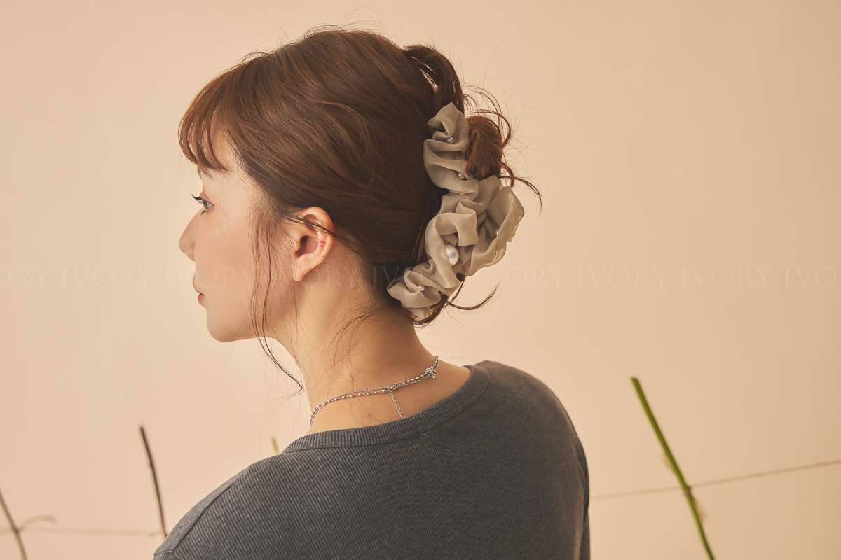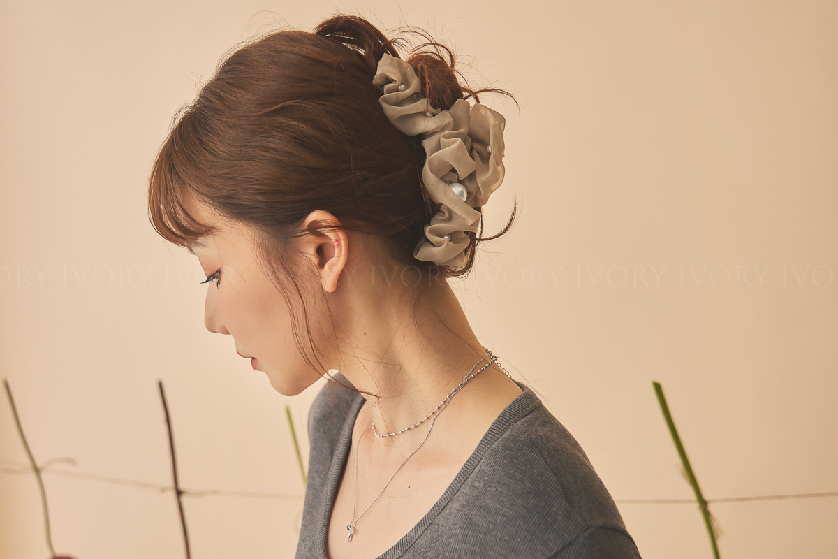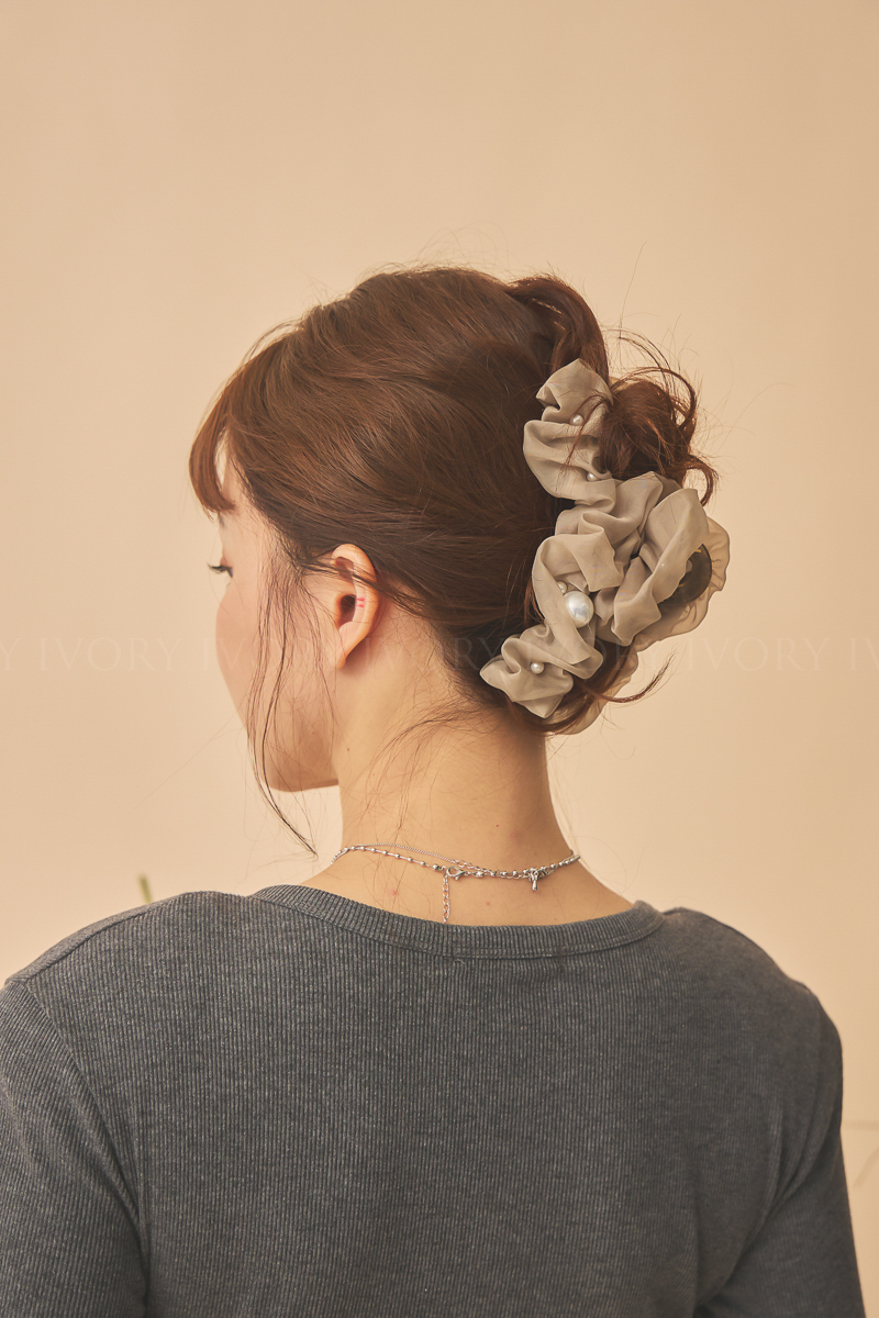 Q51058皺皺堆疊珍珠雪紡鯊魚夾