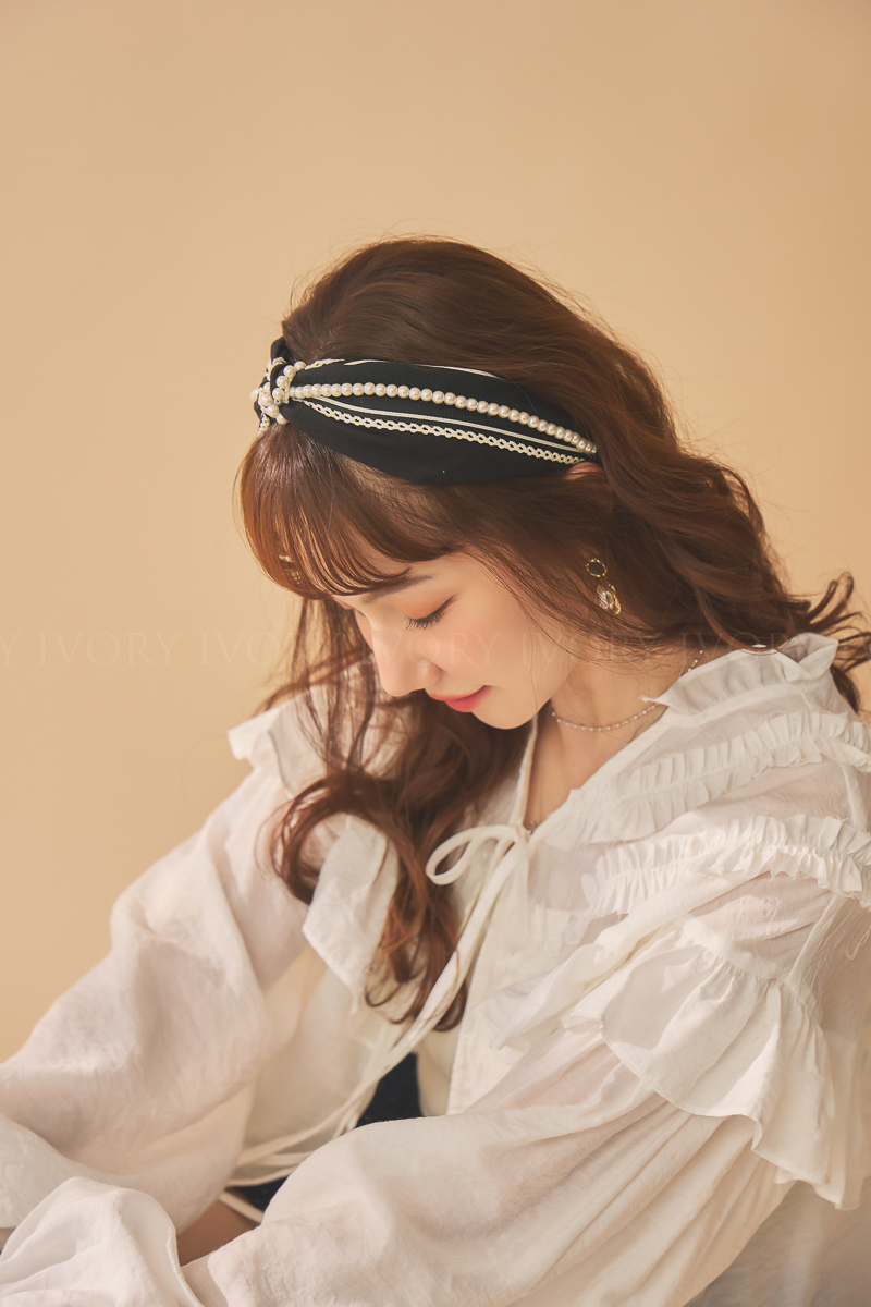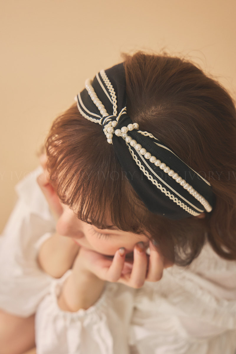 Q51060珍珠鏈條拼接蕾絲扭結髮圈