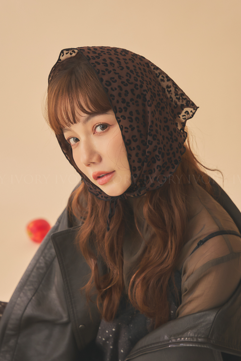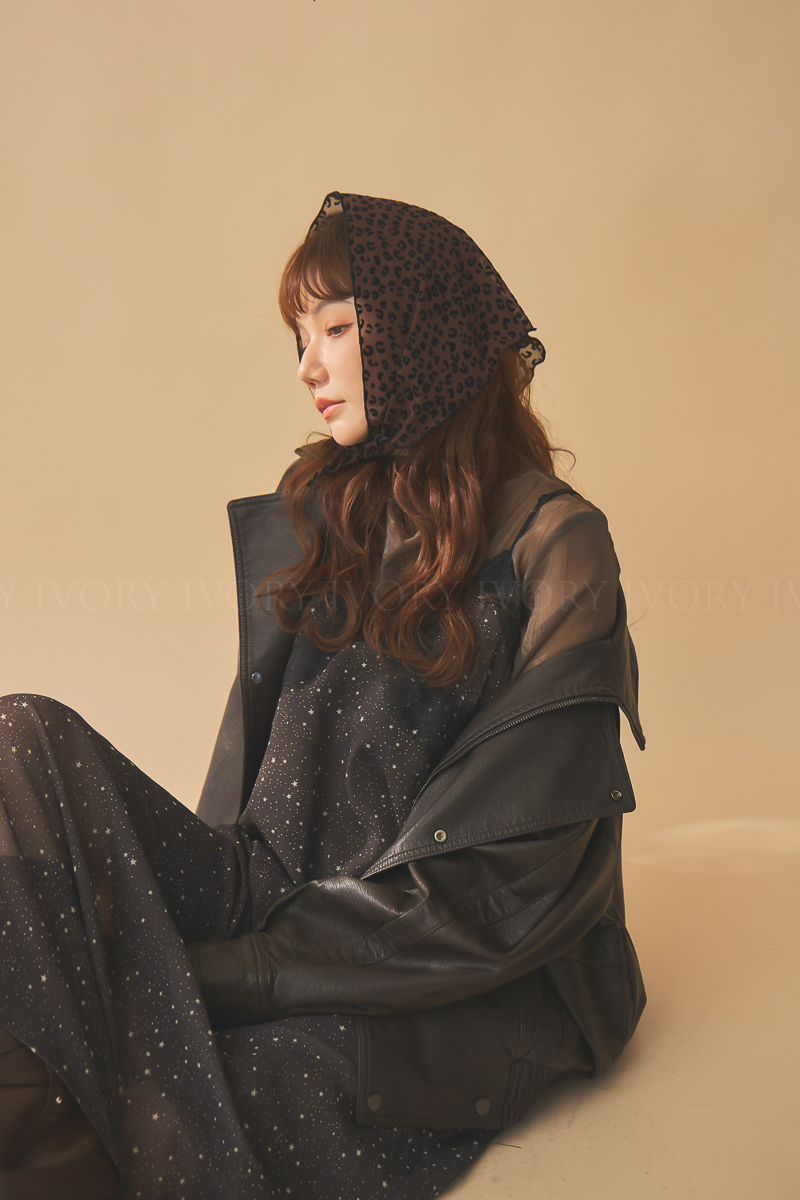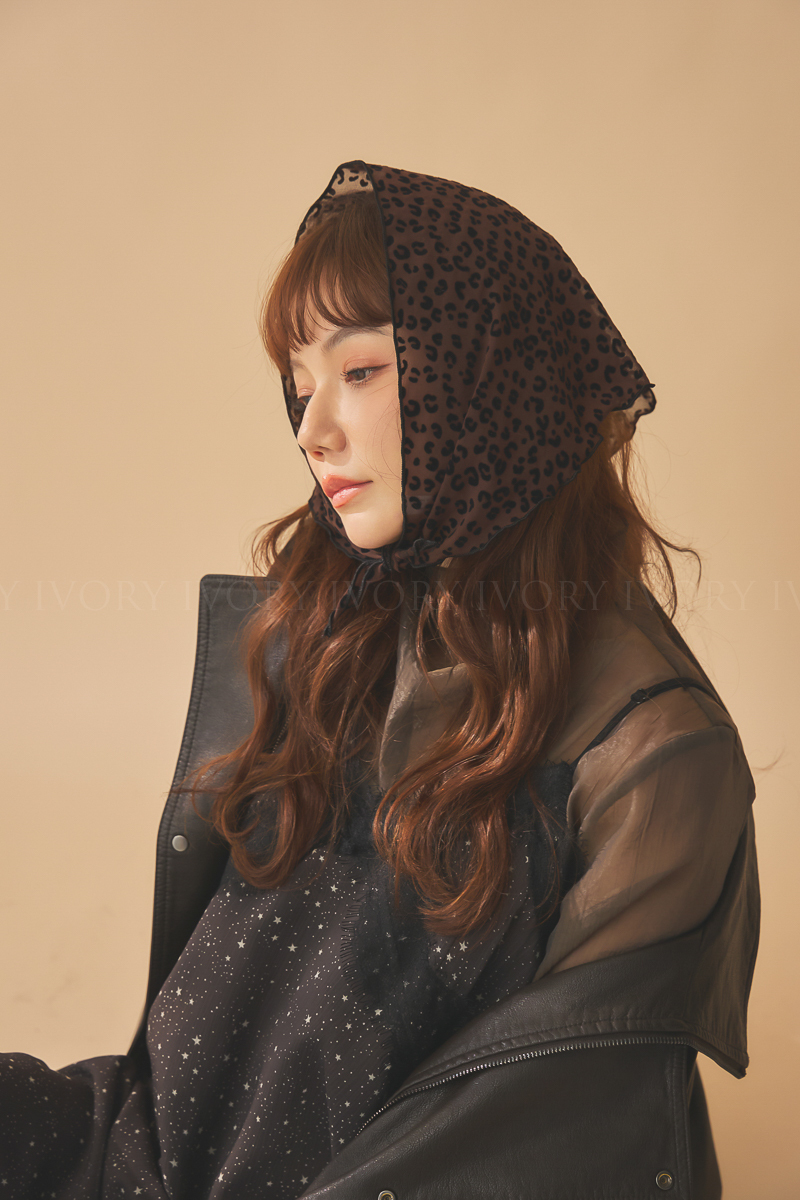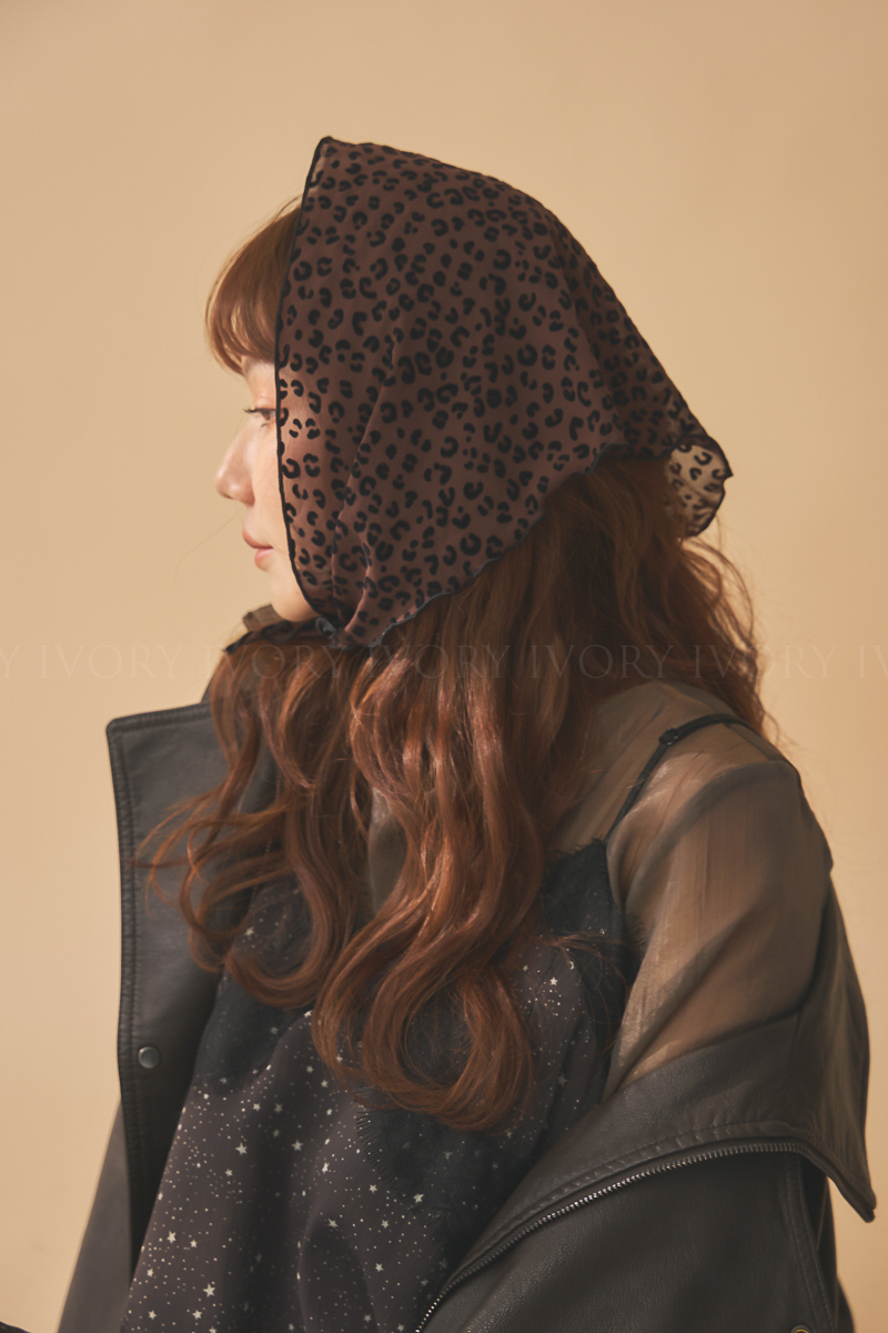 Q51063時髦女孩植絨豹紋雪紡三角巾