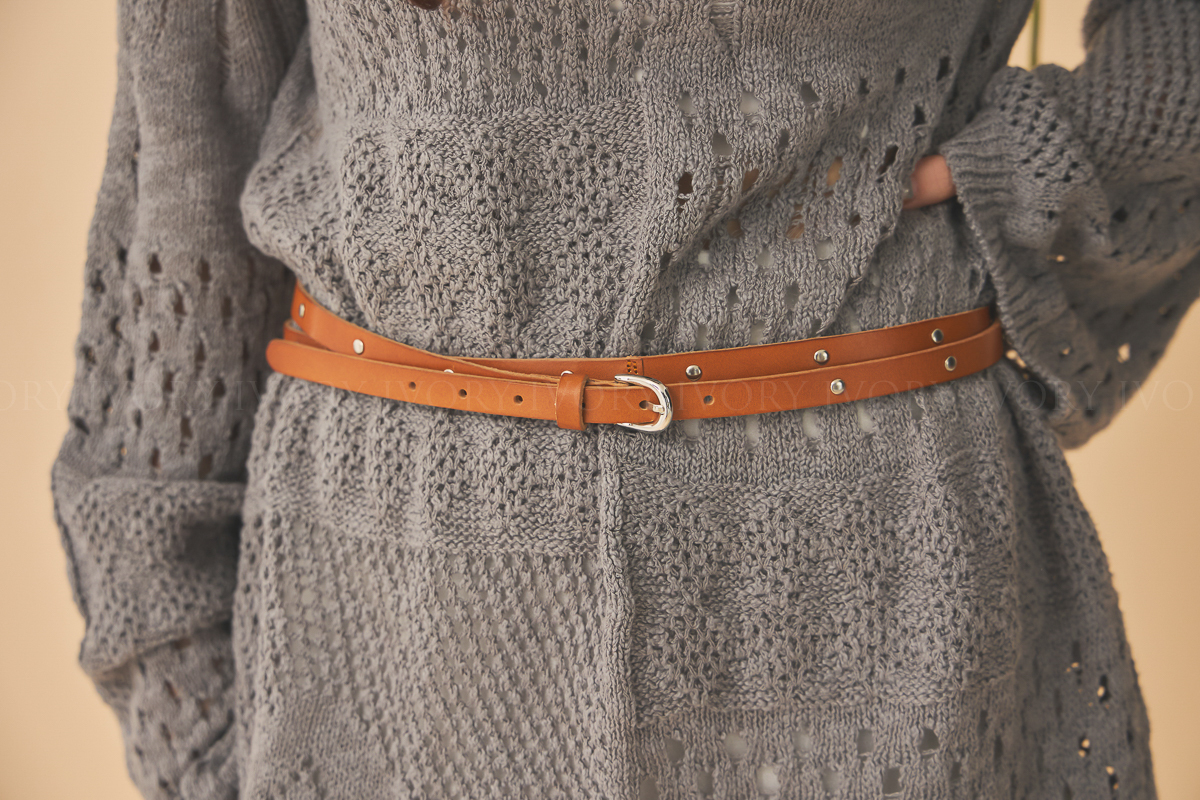 Q51065銀色卯丁釦雙圈牛皮皮帶< Kimy清單>