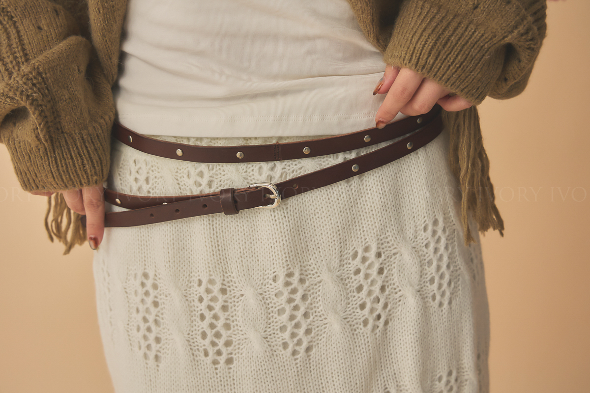 Q51065銀色卯丁釦雙圈牛皮皮帶< Kimy清單>