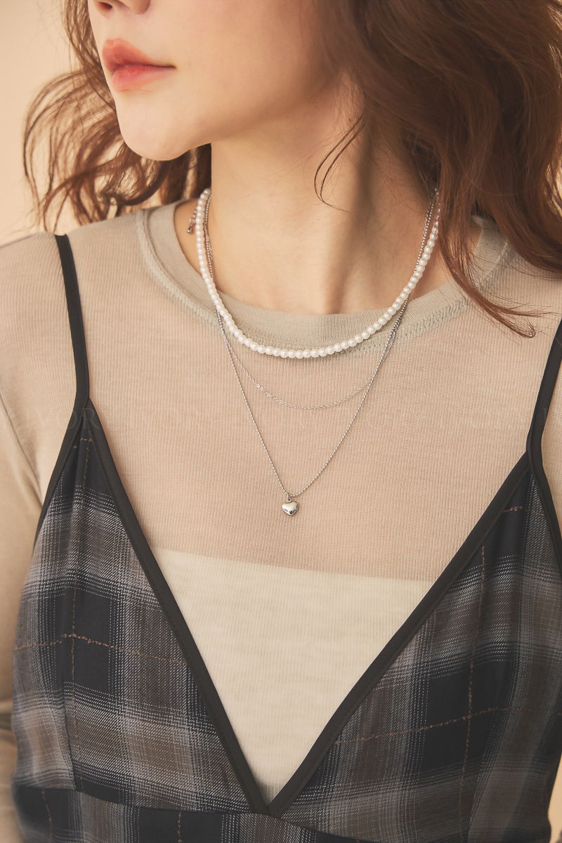 Q51070珍珠拼接愛心三條式項鍊