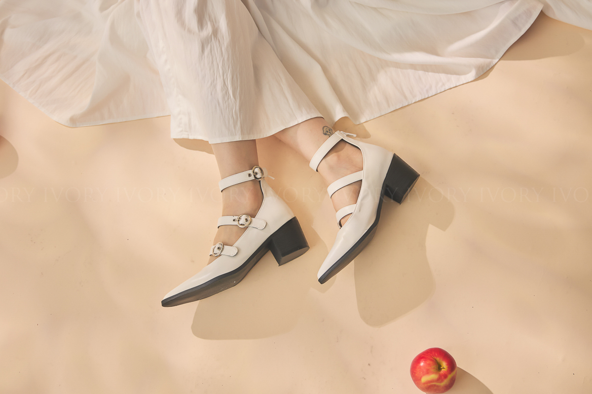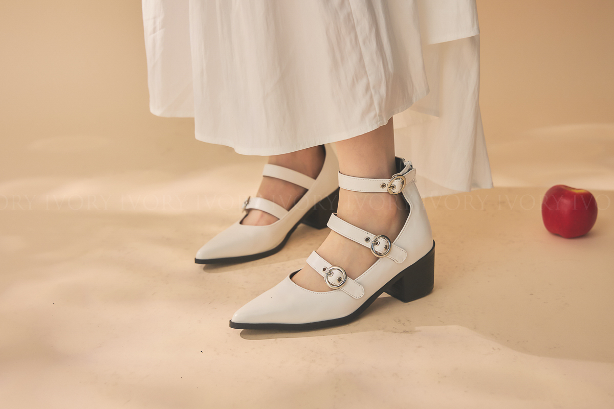 Q51073復古女伶三扣環瑪利珍跟鞋