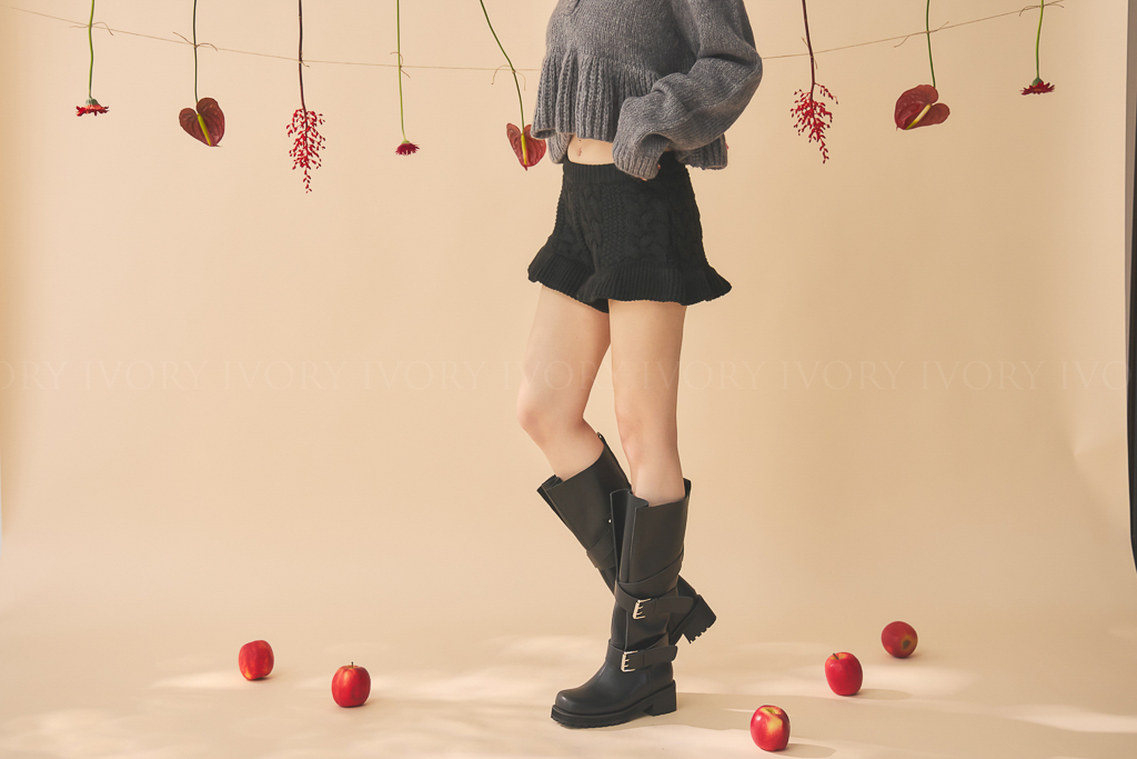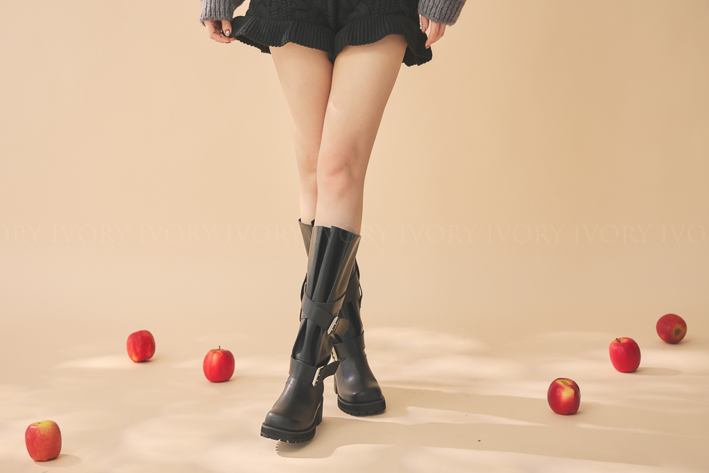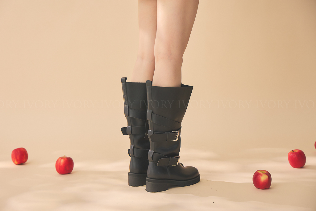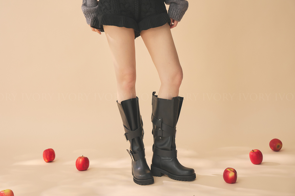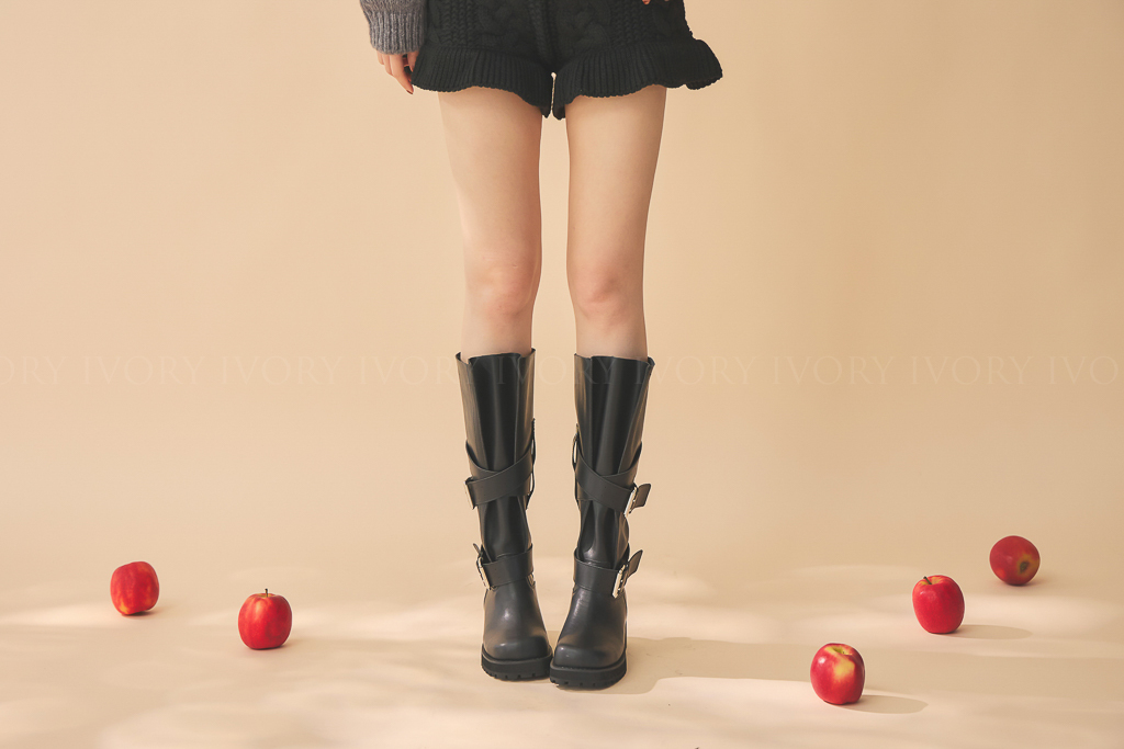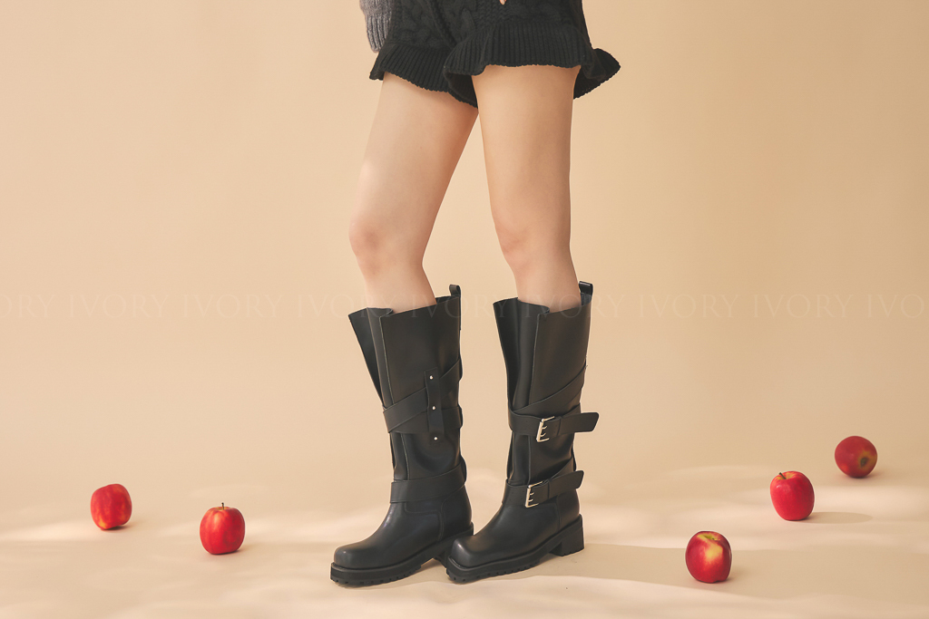Q51074歐美大牌感交叉雙扣長靴