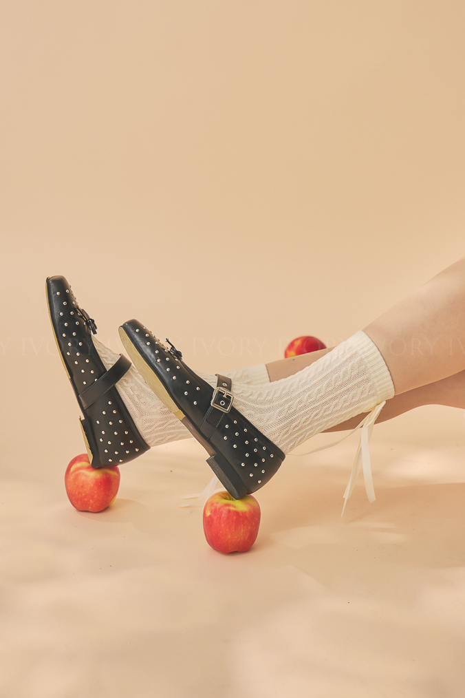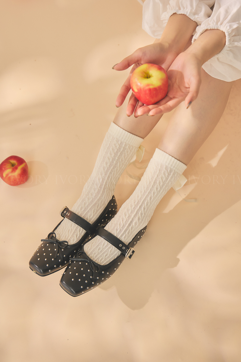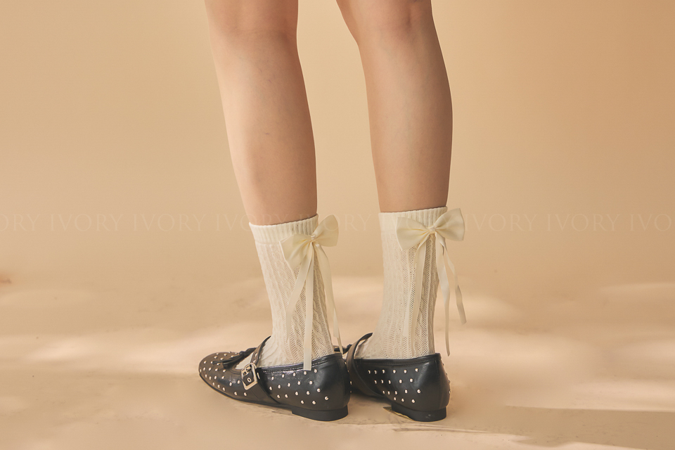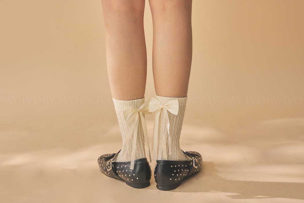 Q51075立體大蝴蝶結緞帶麻花造型襪