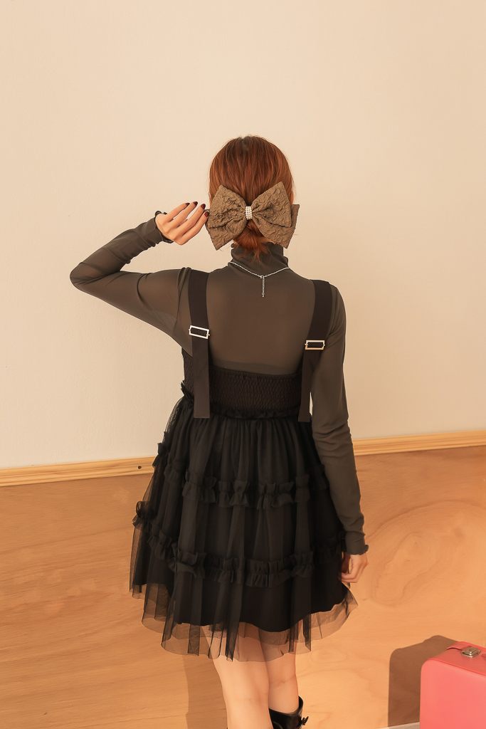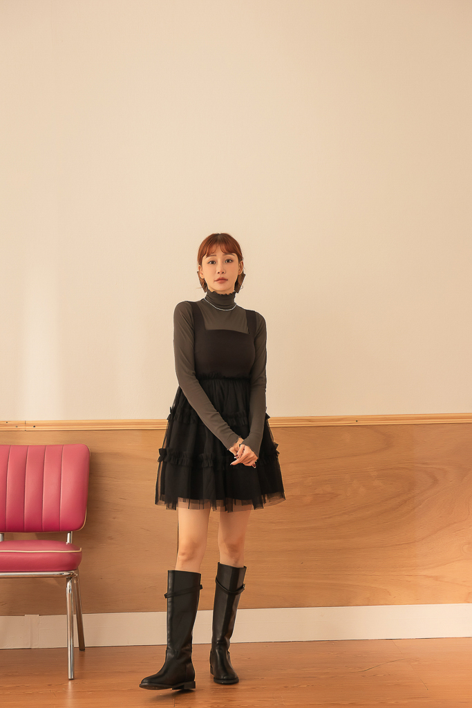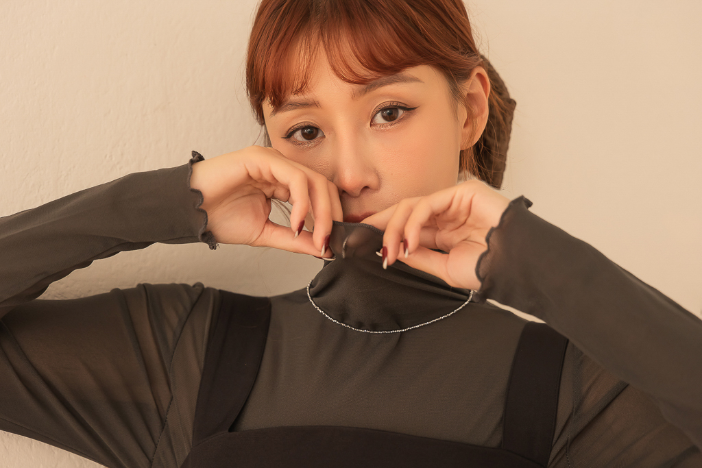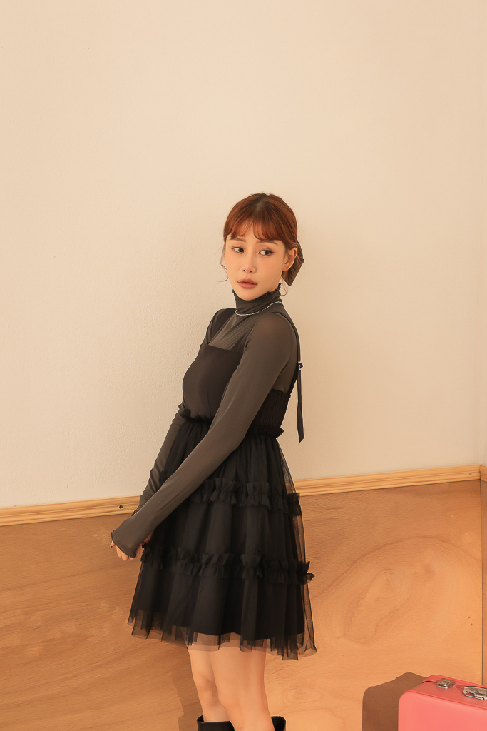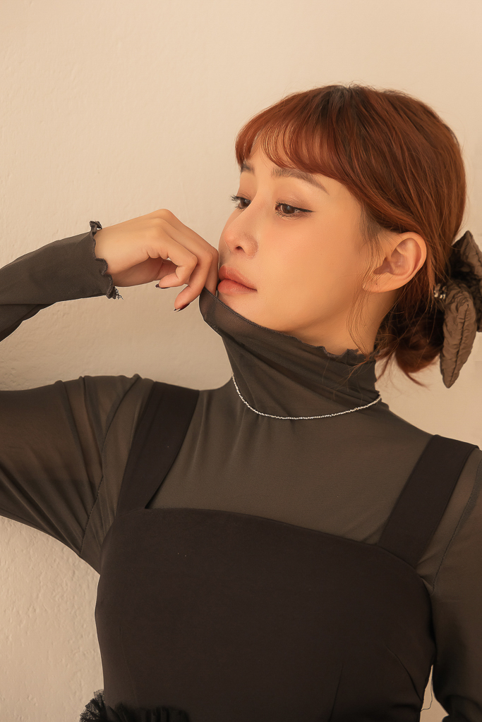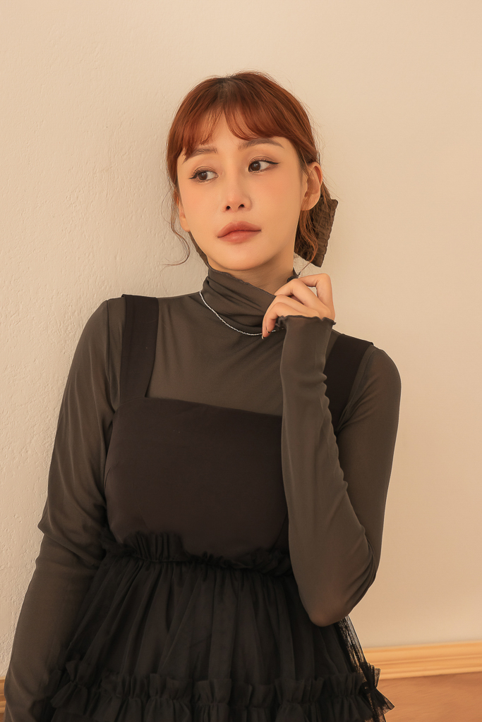 S49014親膚柔軟捲邊透紗高領上衣<可青清單>