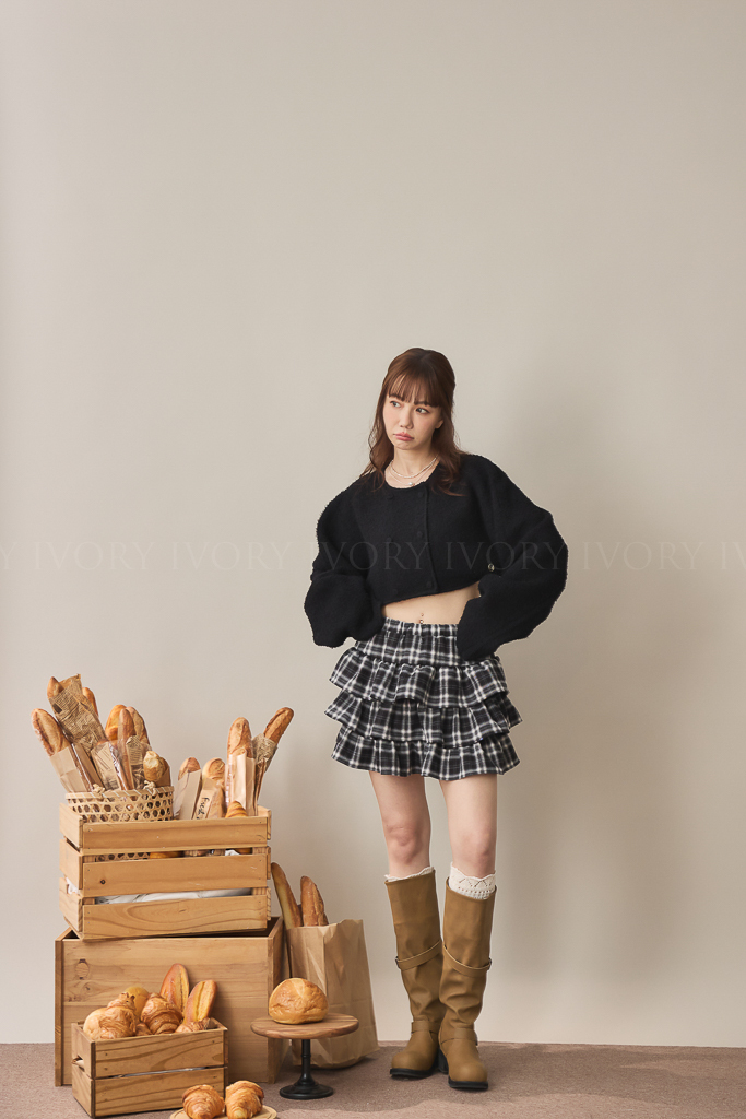 S59001蛋糕荷葉邊格紋短裙< Kimy/謝琦琦清單 >