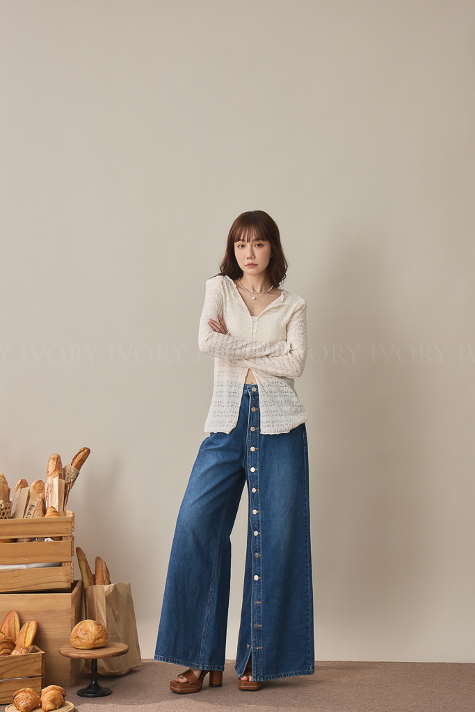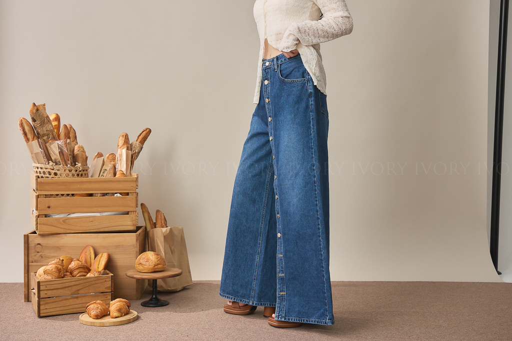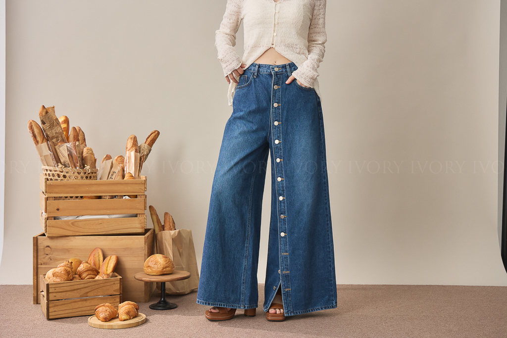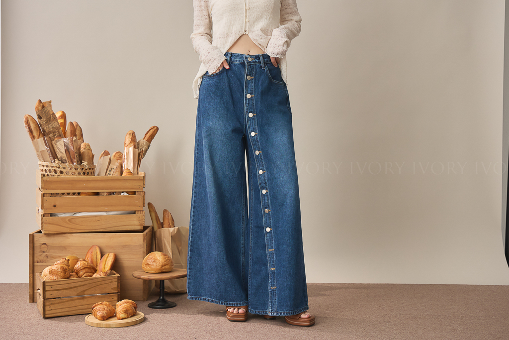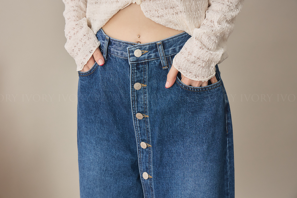 S59009日系小姊姊全排扣式長腿牛仔褲