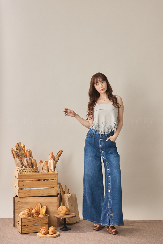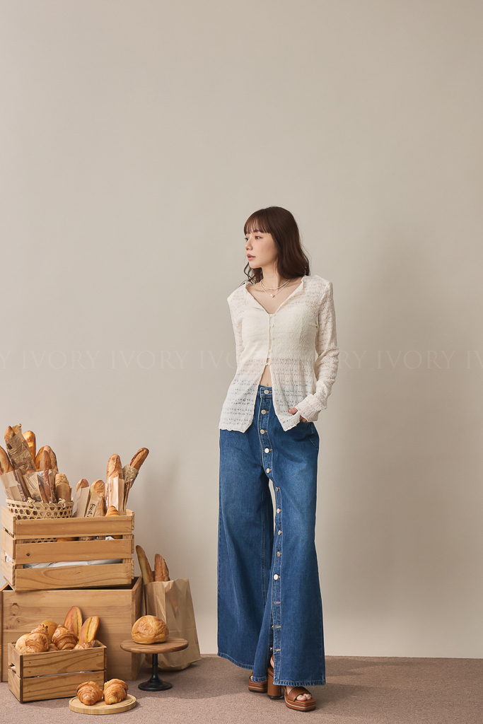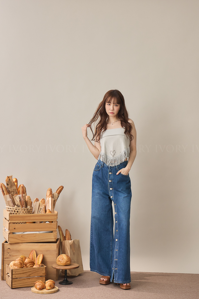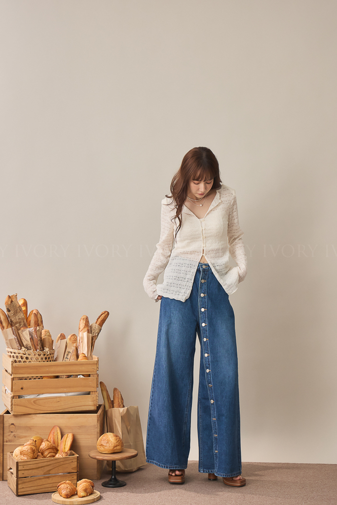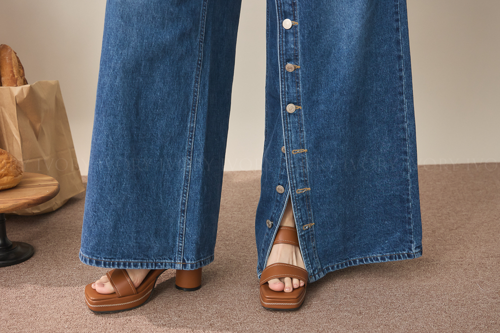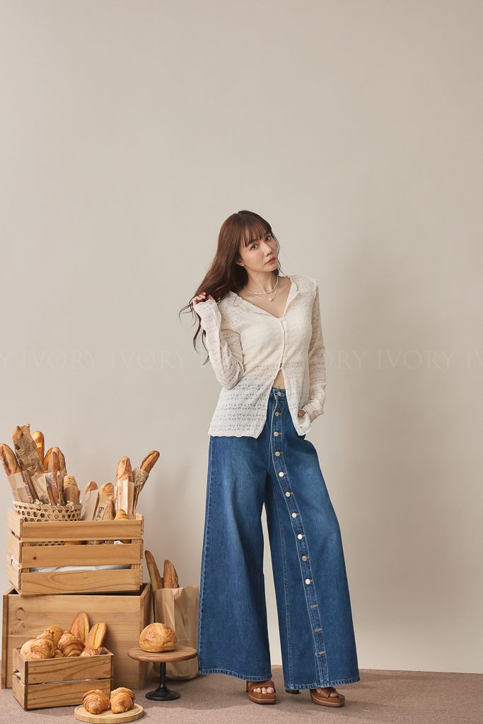 S59009日系小姊姊全排扣式長腿牛仔褲