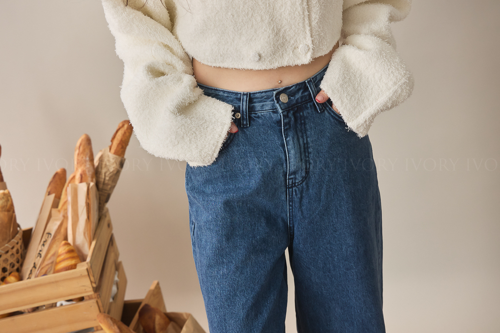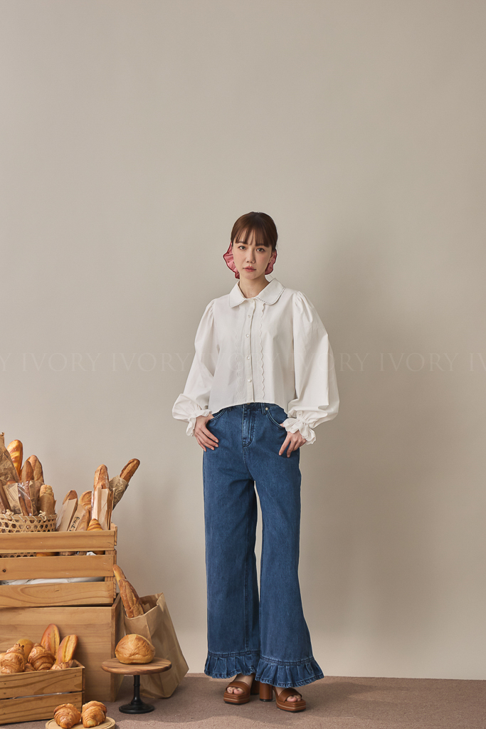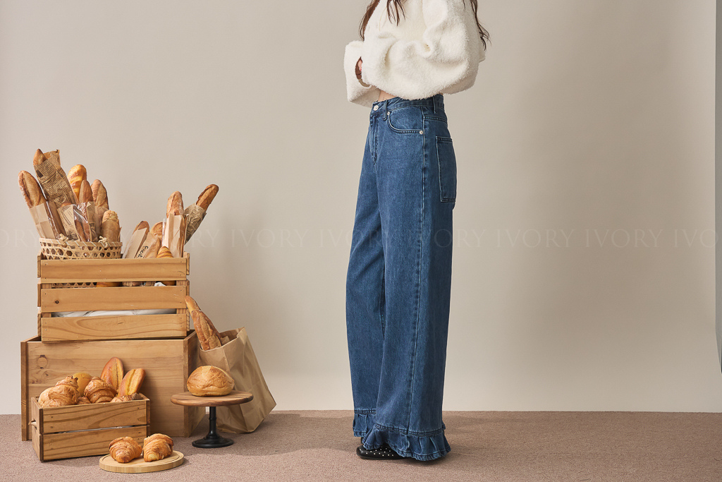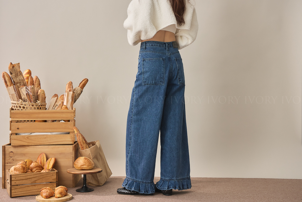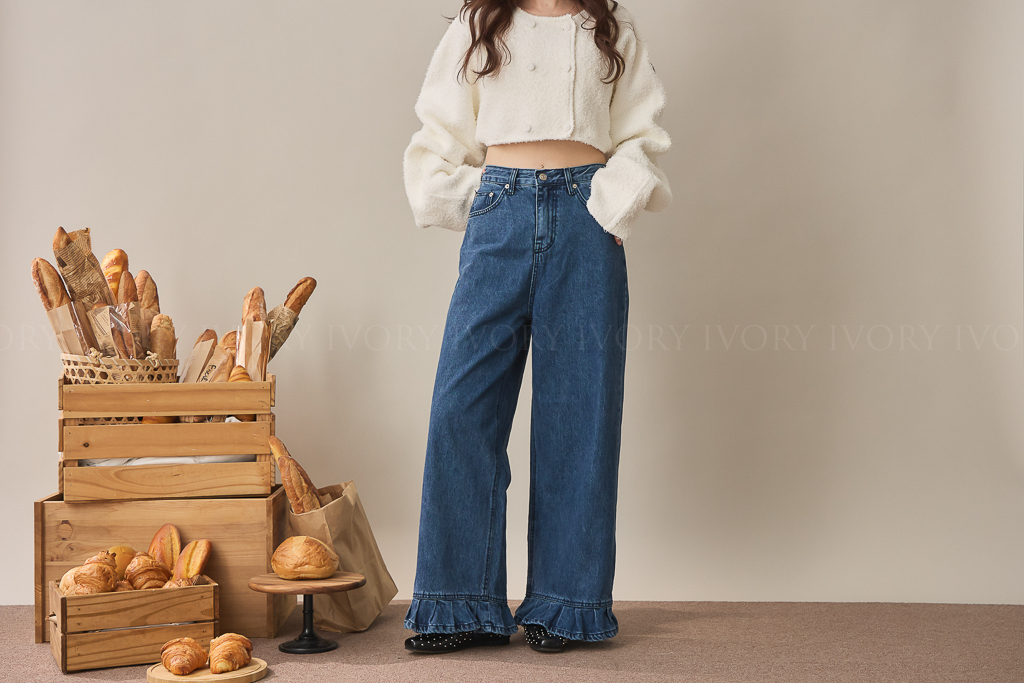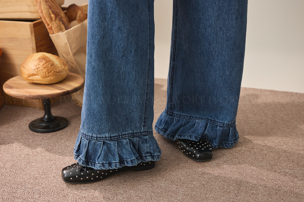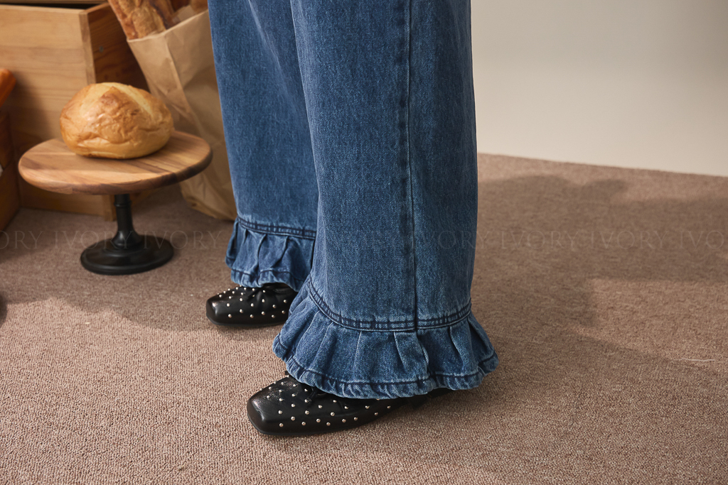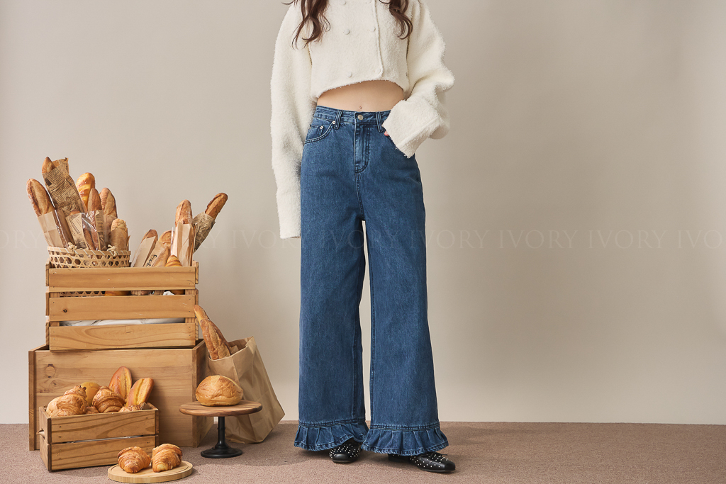 S59010花瓣荷葉滾邊直筒牛仔褲