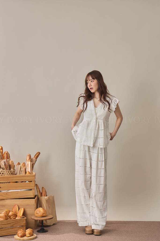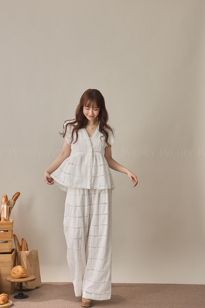 S59014大推款方格緹花直筒長褲
