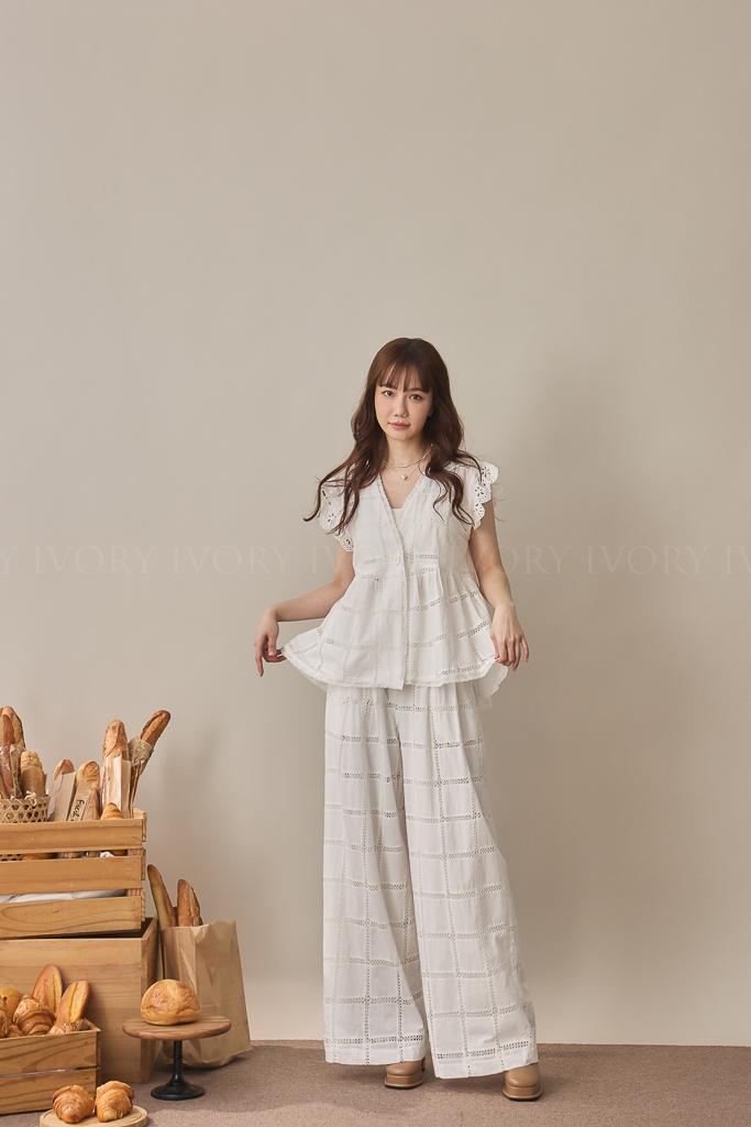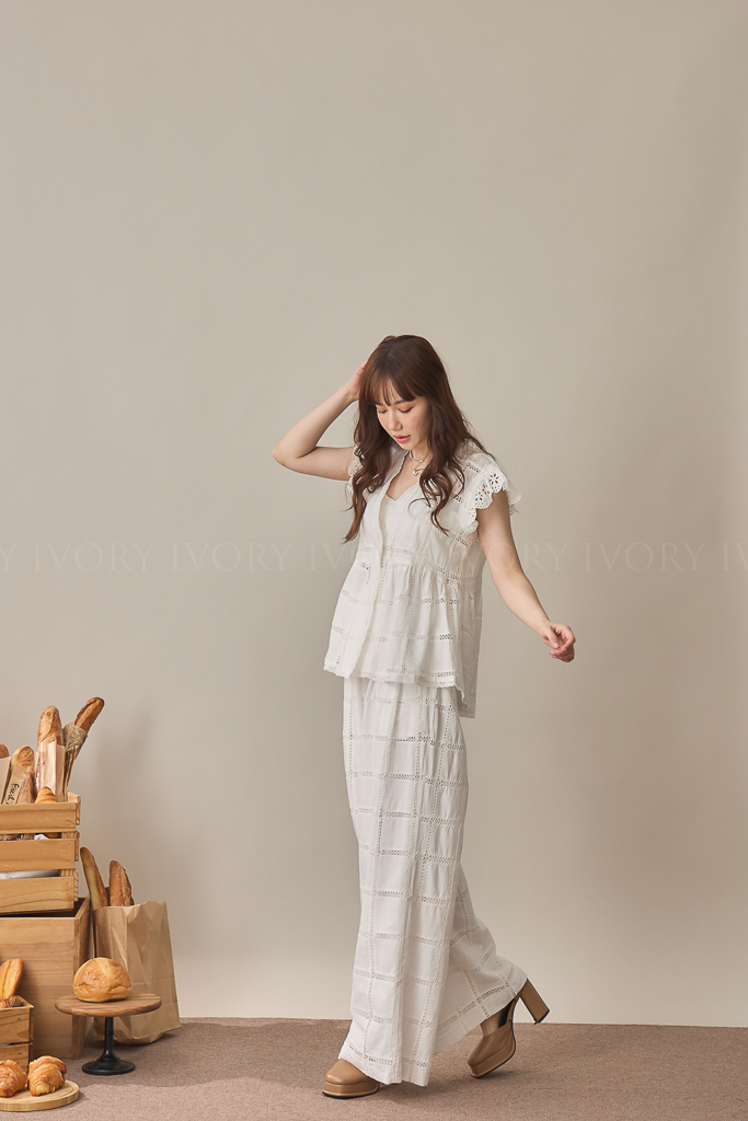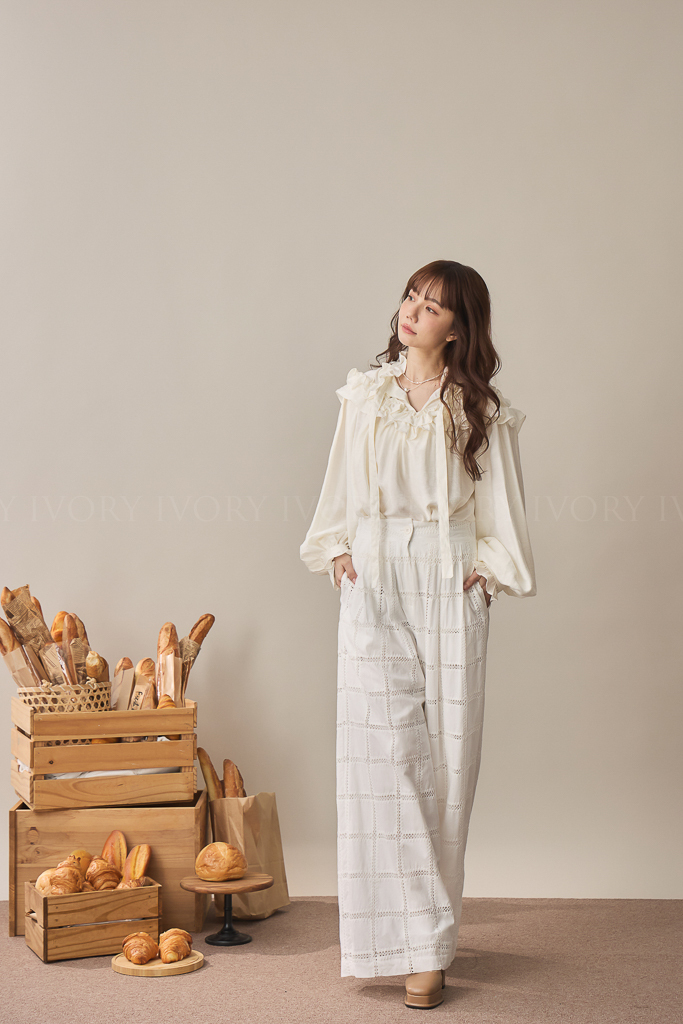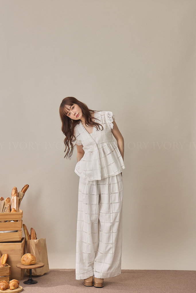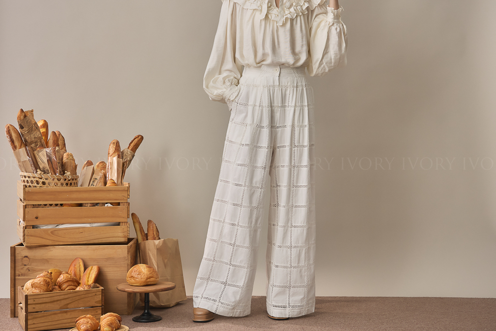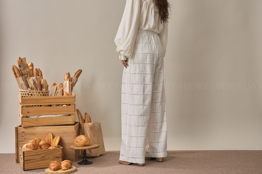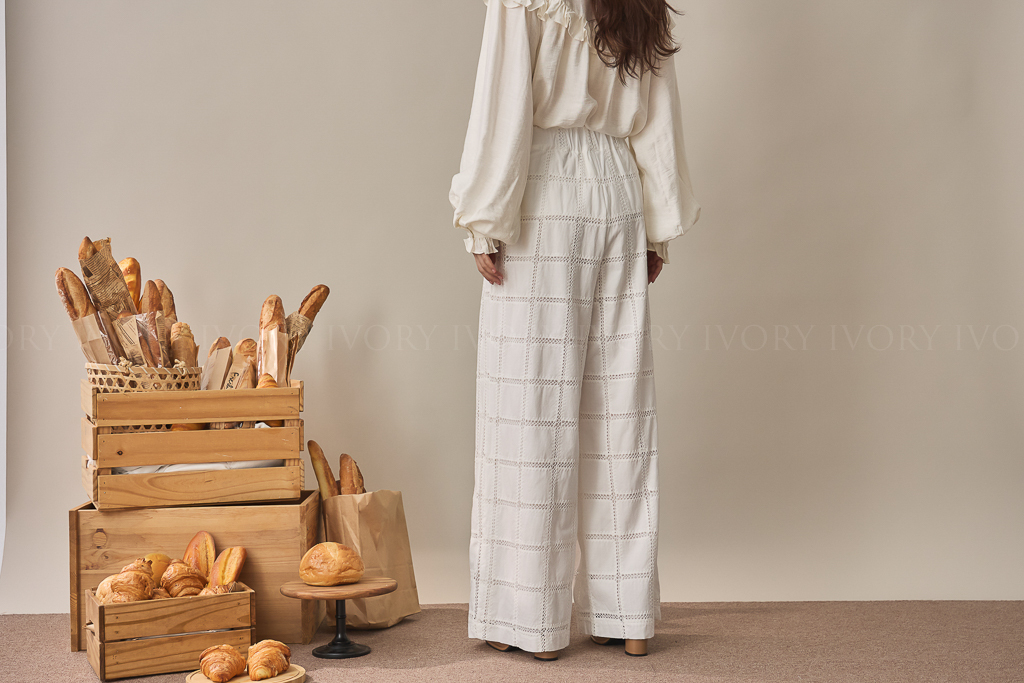 S59014大推款方格緹花直筒長褲