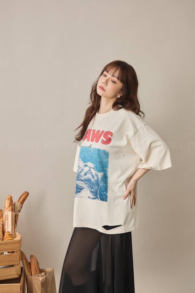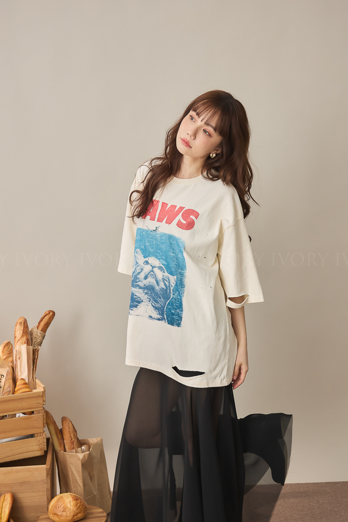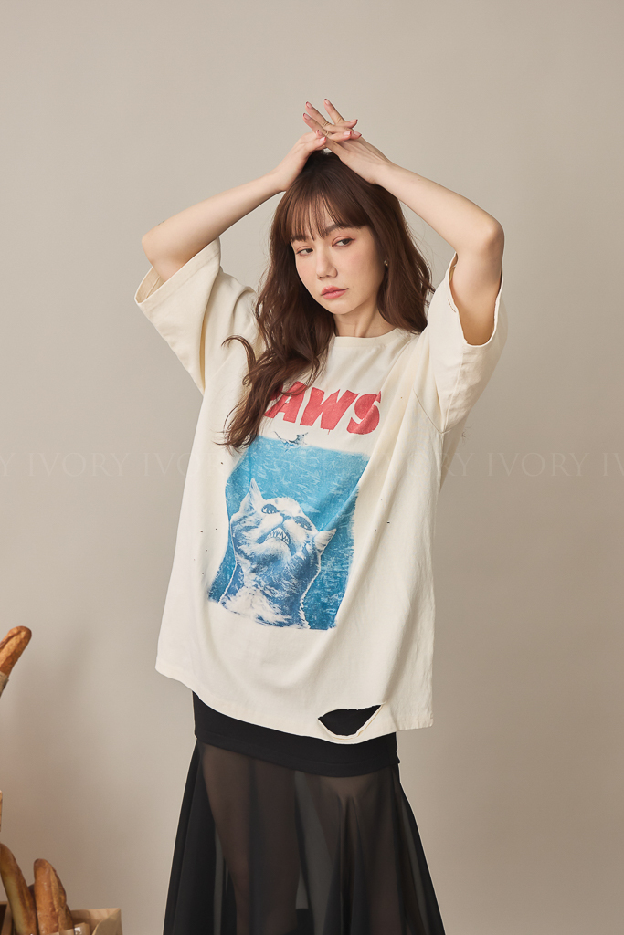 S59019經典電影翻玩大白貓棉質短T<謝琦琦清單>