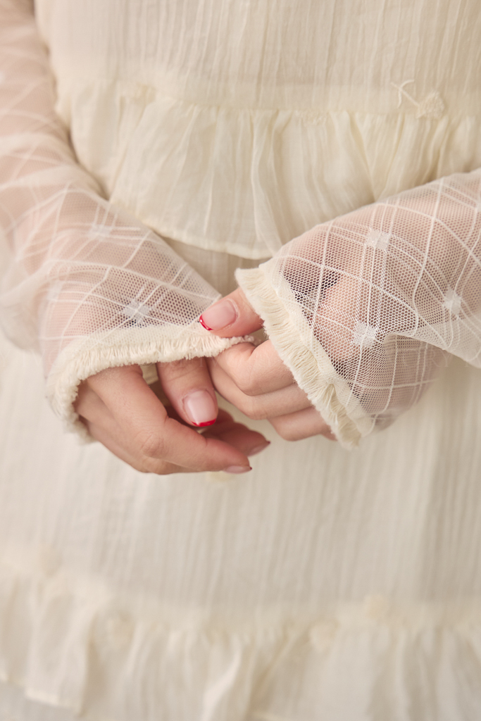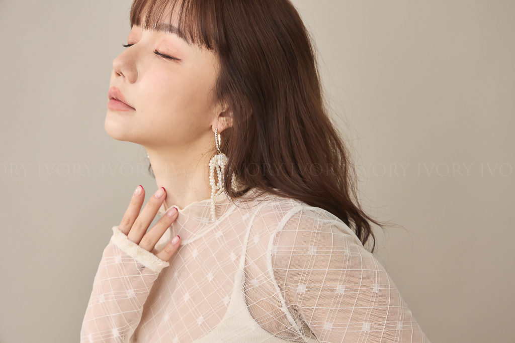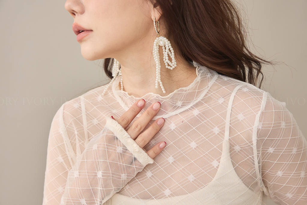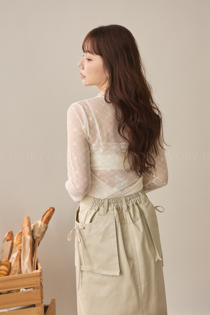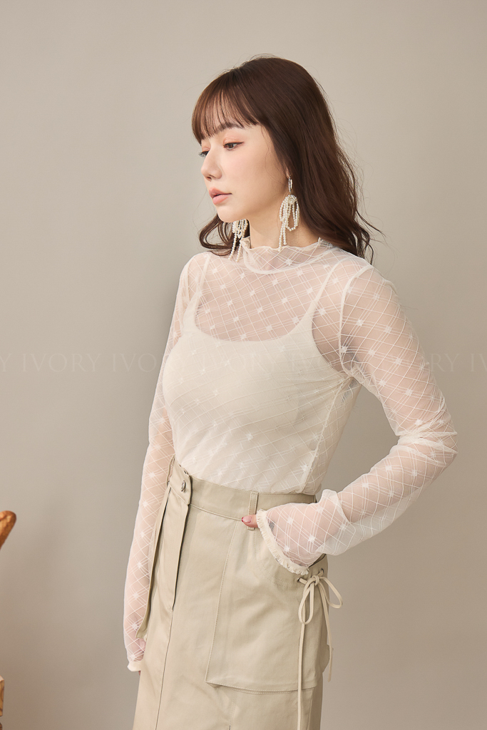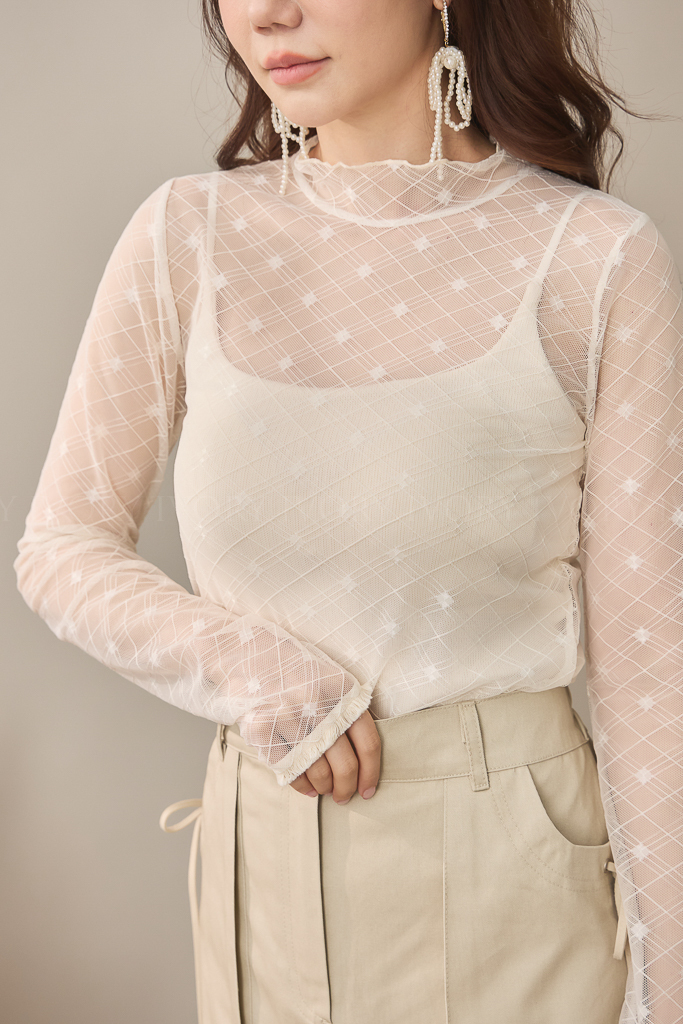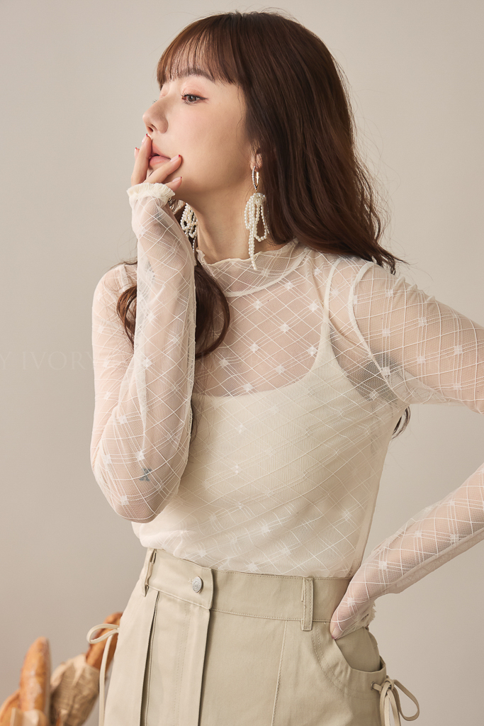 S59021菱格小方塊透紗立領上衣