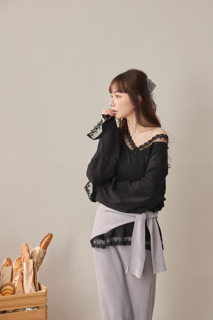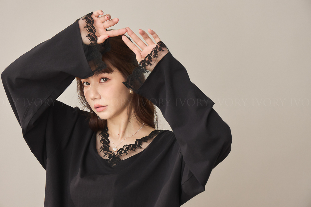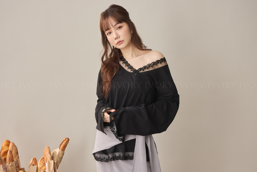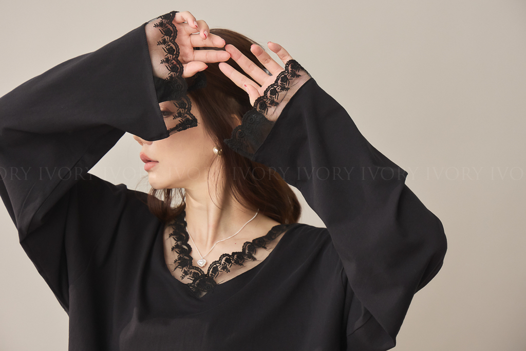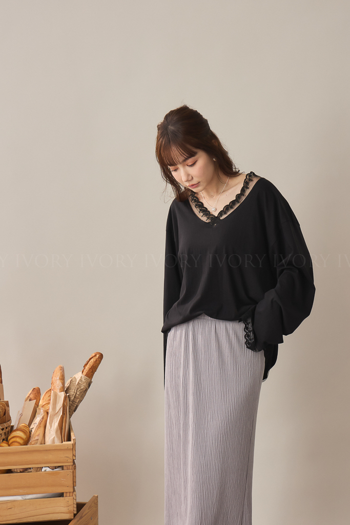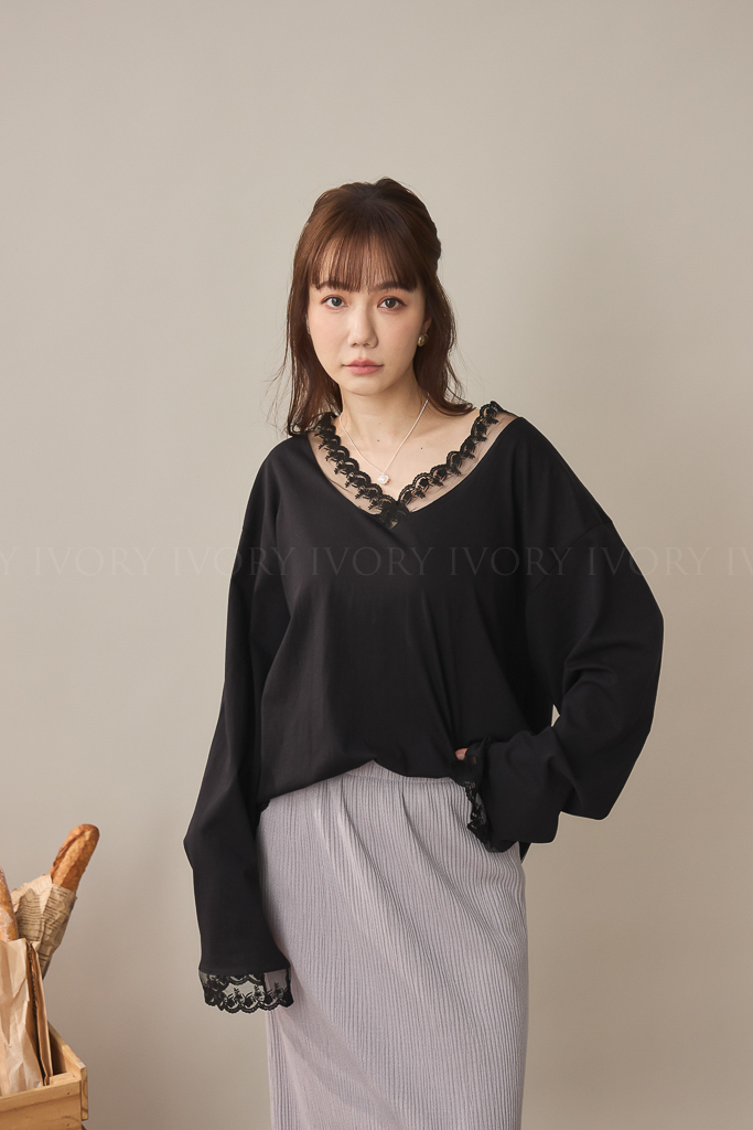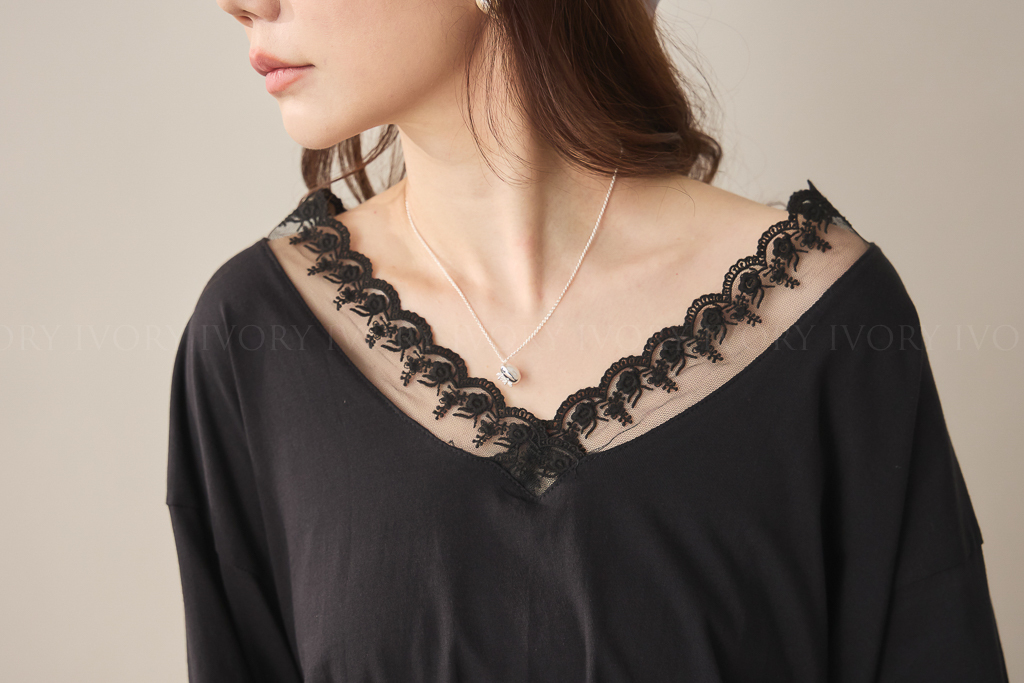 S59023衣櫃必備款蕾絲滾邊V領棉T