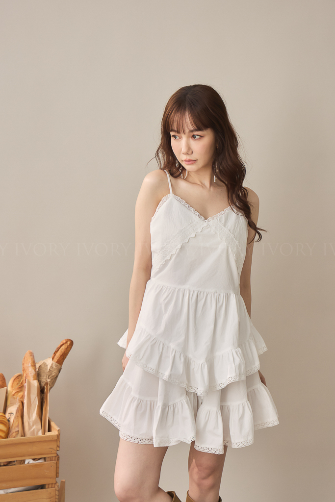 尺寸 : 肩寬 / 胸寬43 / 腰圍41 / 臀圍57 / 衣長72(不含肩帶/肩帶可調)