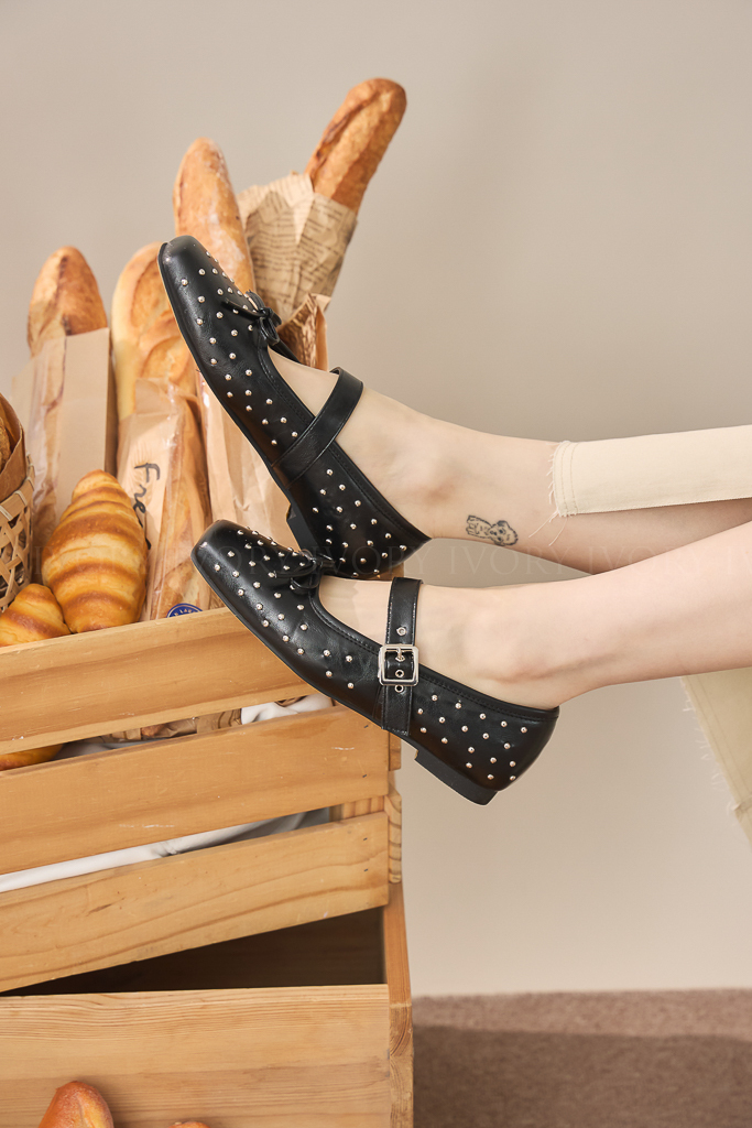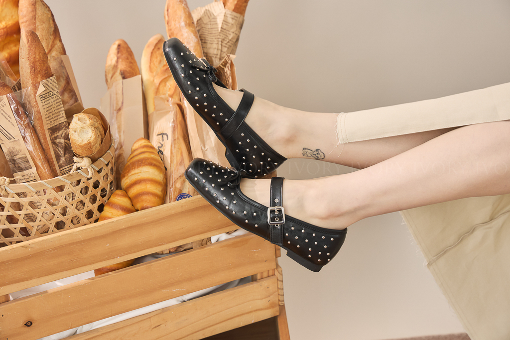 S59054滿滿小釘珠蝴蝶結娃娃鞋
