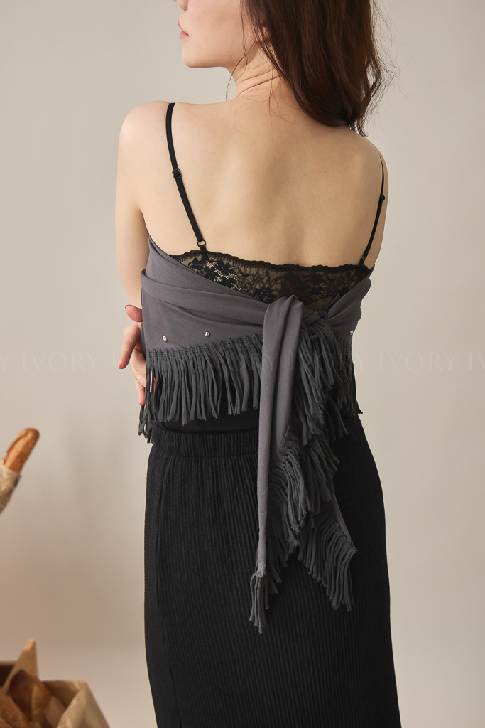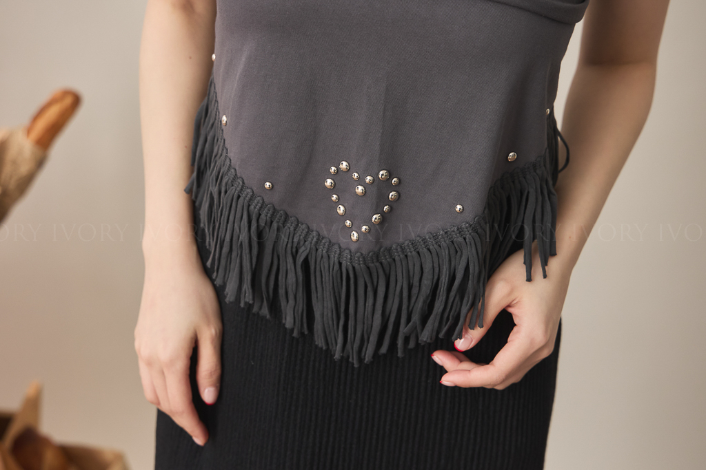 S59059兩Way愛心卯丁流蘇三角巾上衣 < Kimy清單 >
