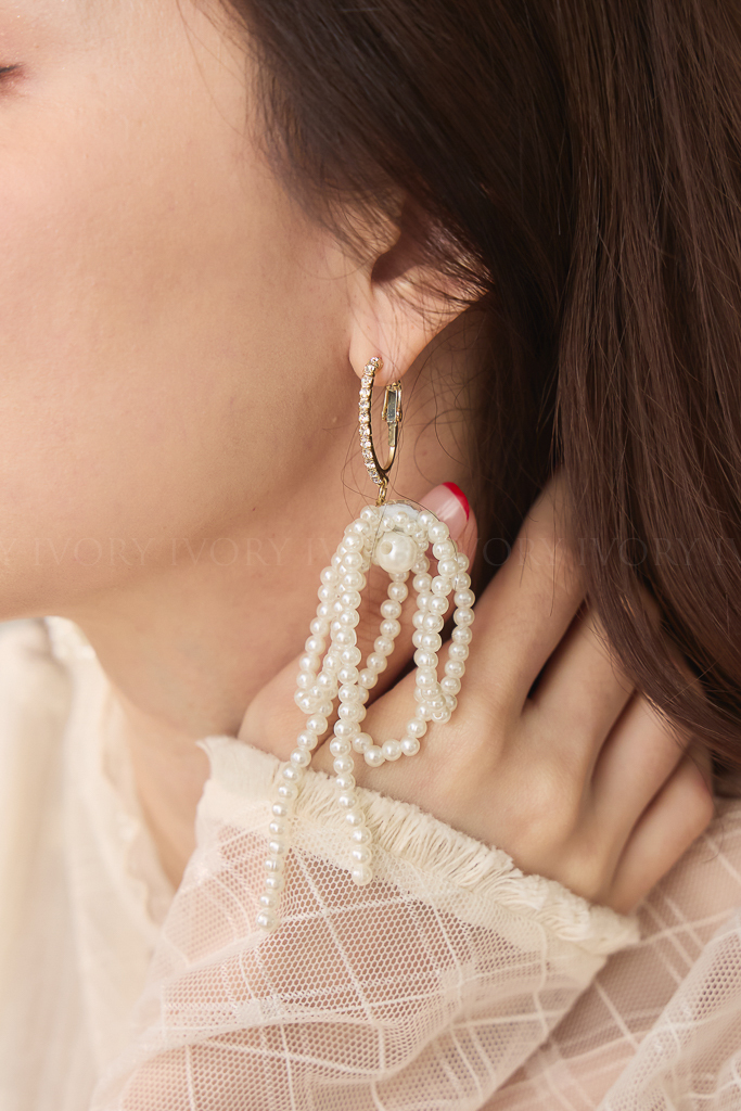 S59071墜落的珍珠蝴蝶蝶造型感耳環