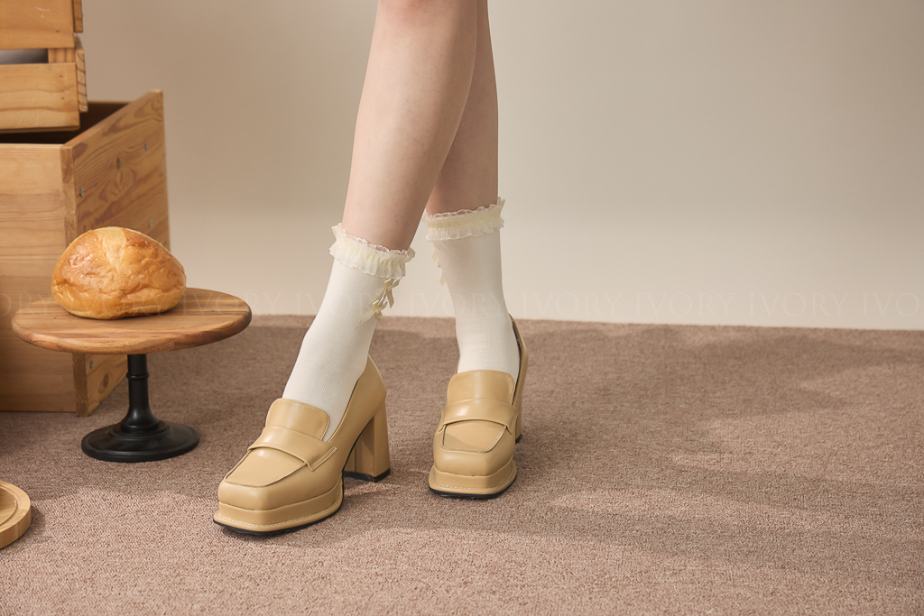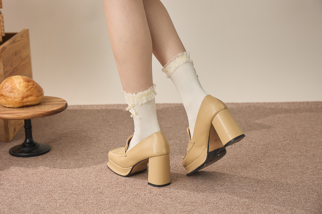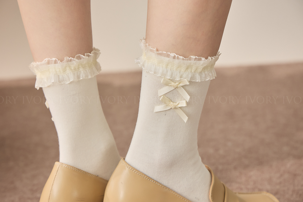 S59076芭蕾風雙蝴蝶結蕾絲滾邊小短襪