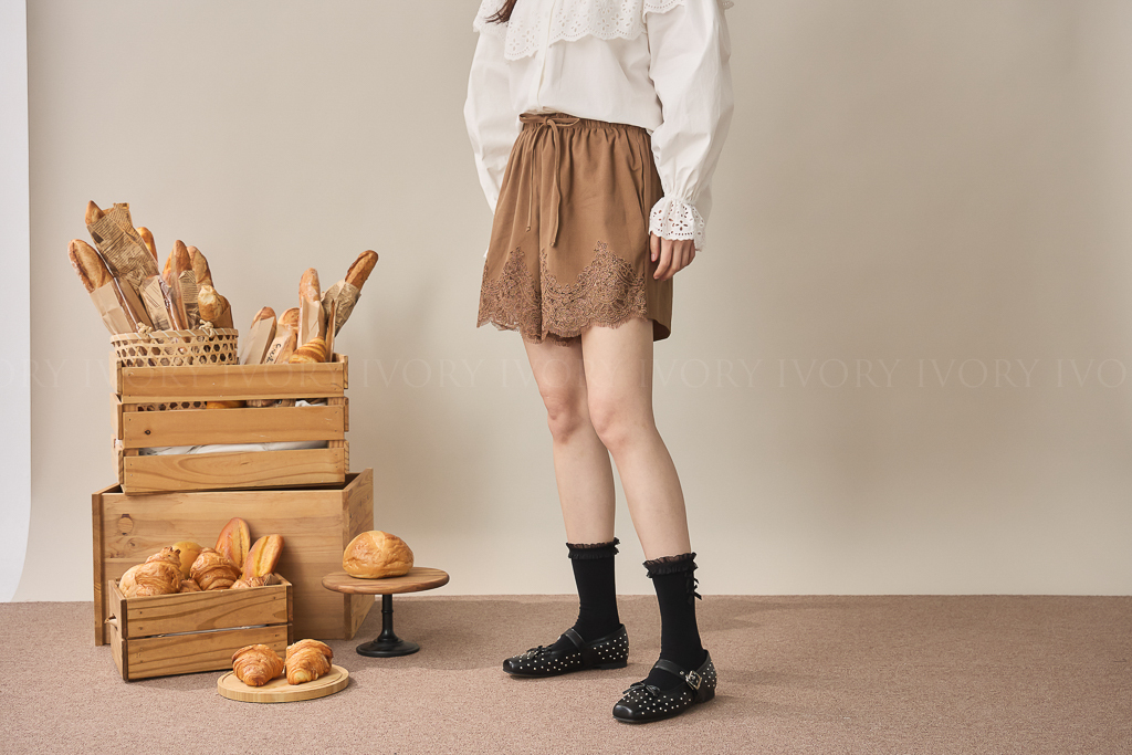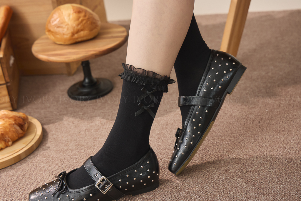 S59076芭蕾風雙蝴蝶結蕾絲滾邊小短襪