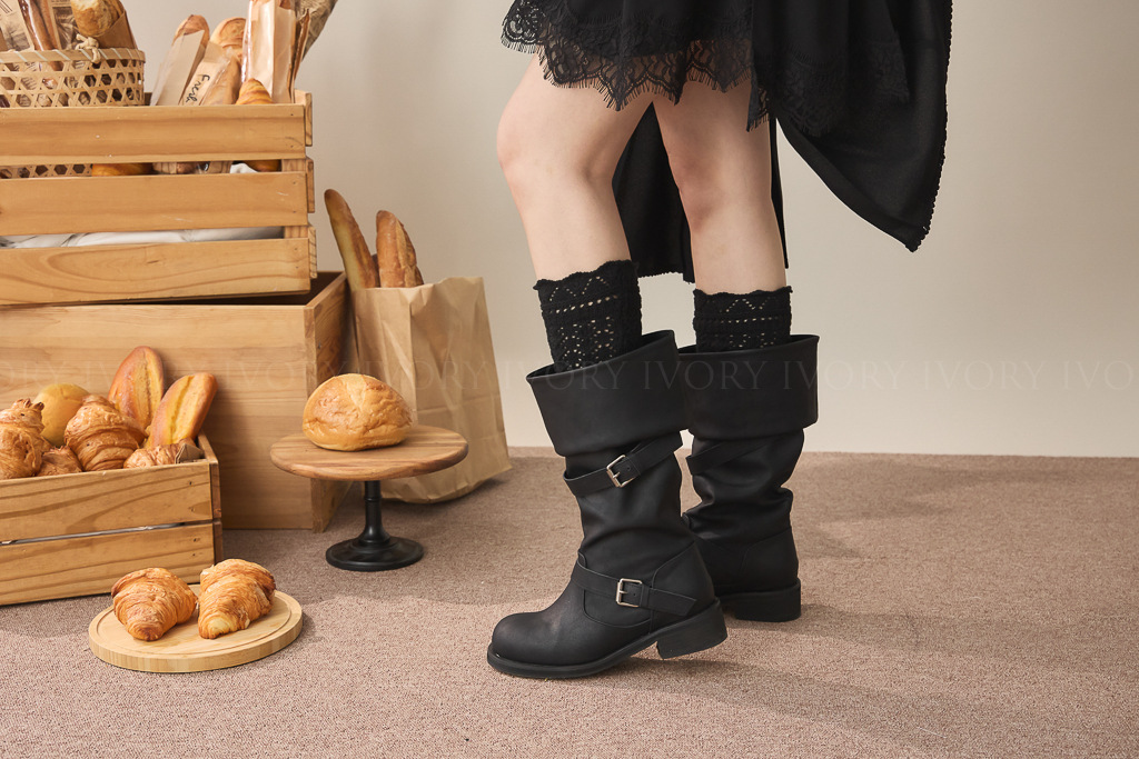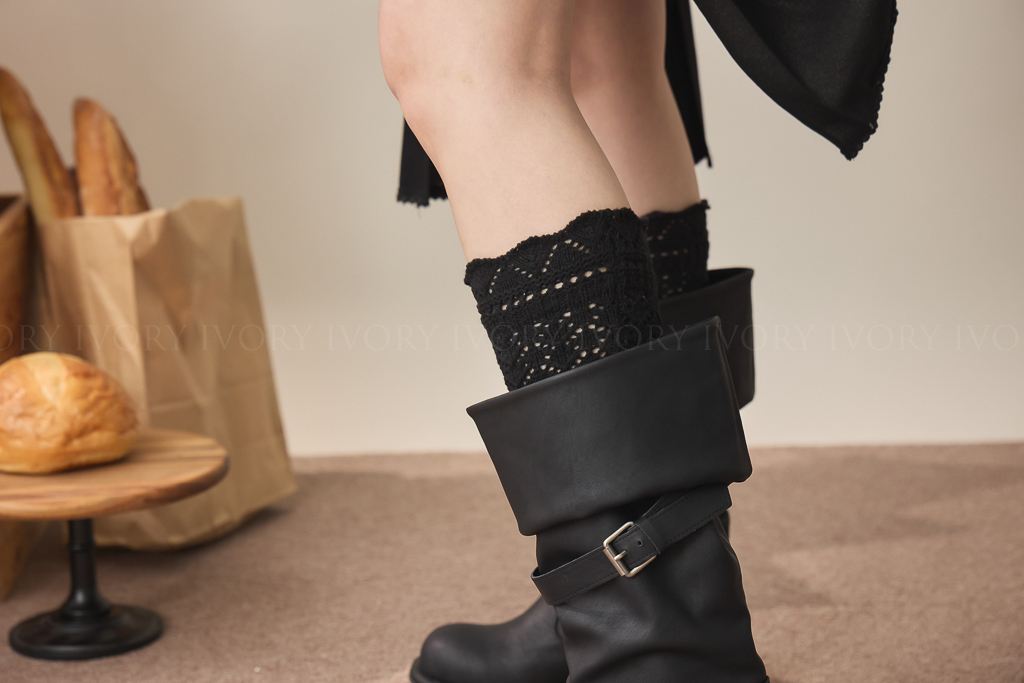 S59077波西米亞雕花蕾絲勾針中筒襪