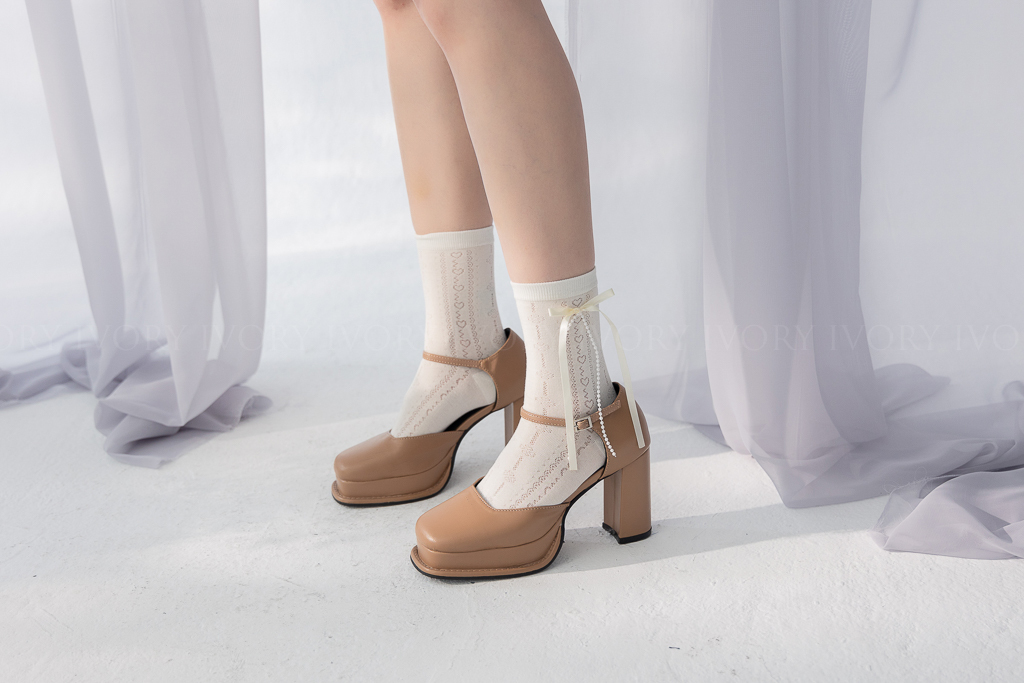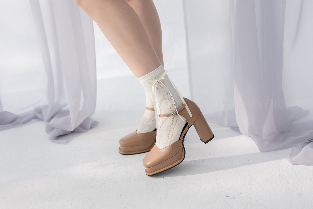 U57071緞帶蝴蝶結珍珠鍊愛心短襪