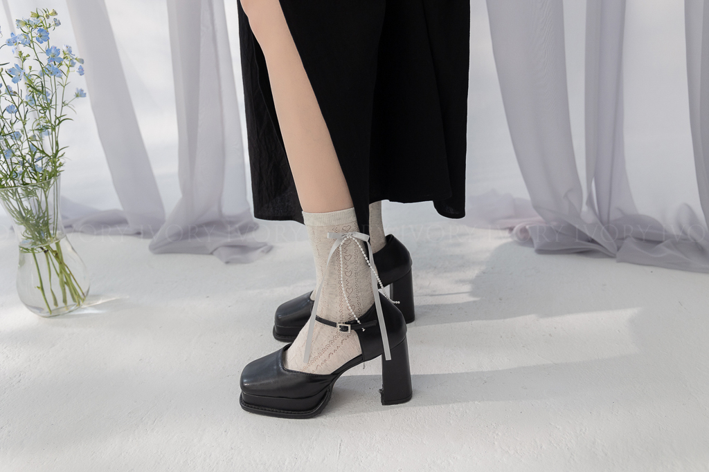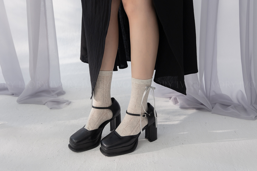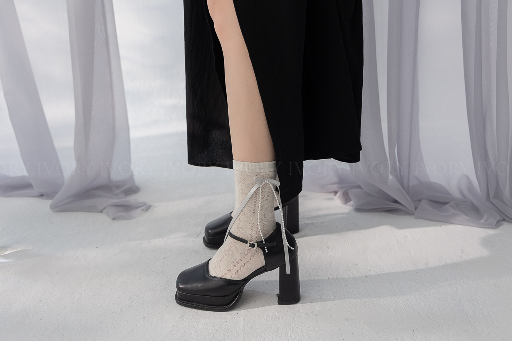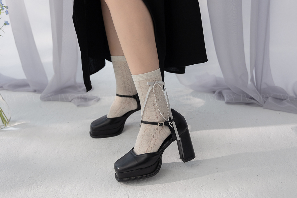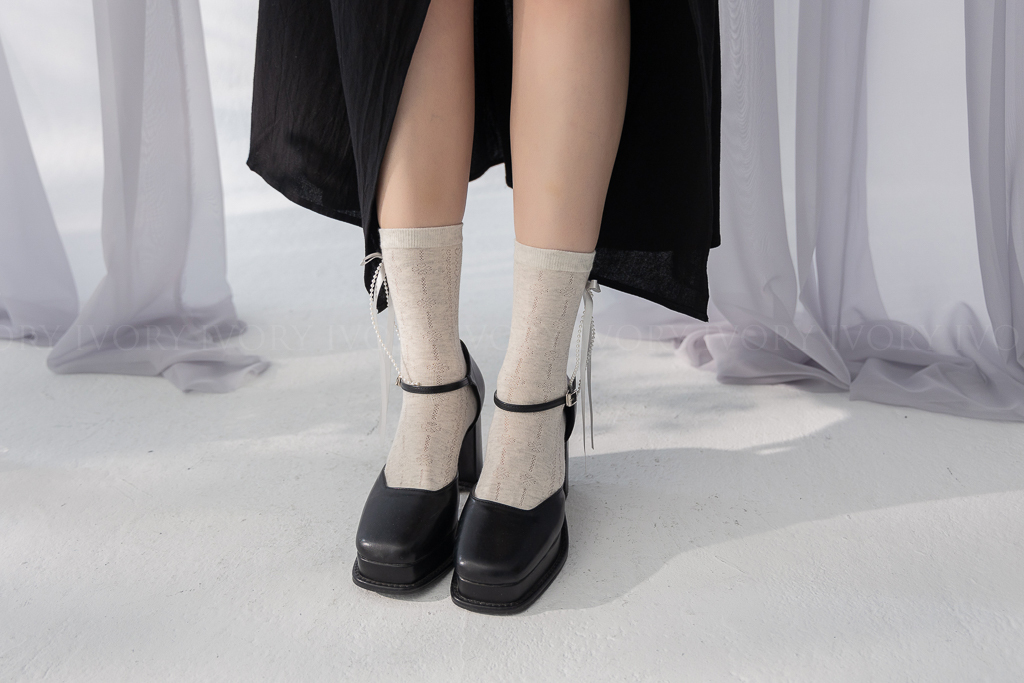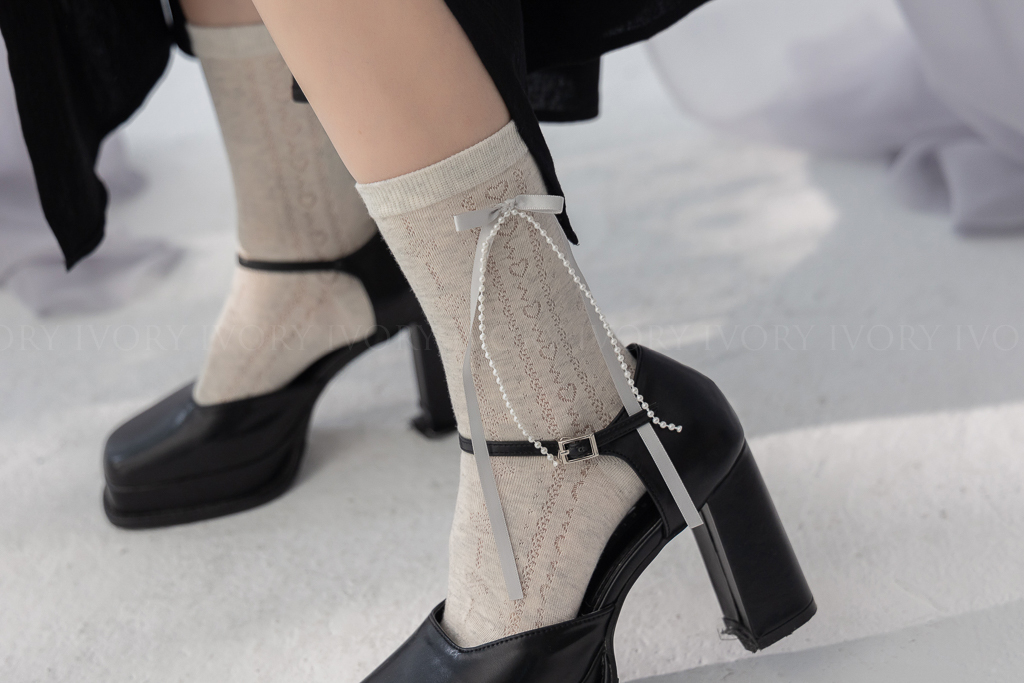 U57071緞帶蝴蝶結珍珠鍊愛心短襪