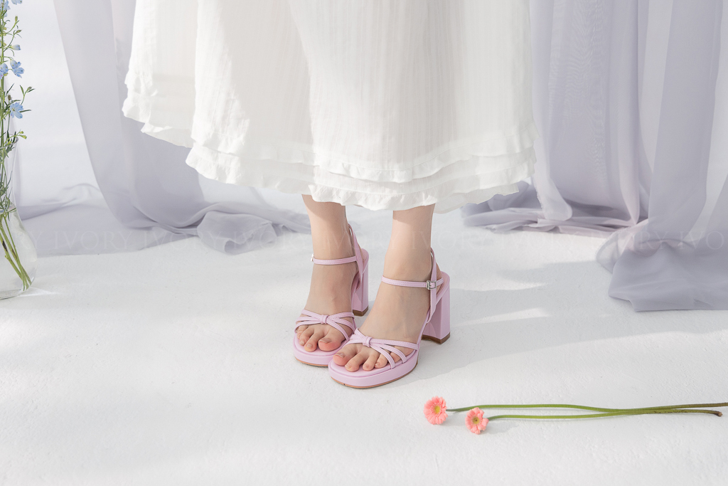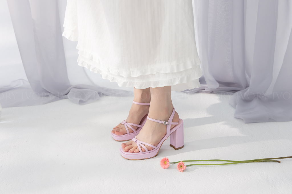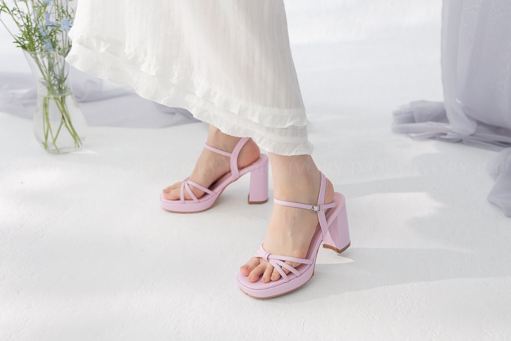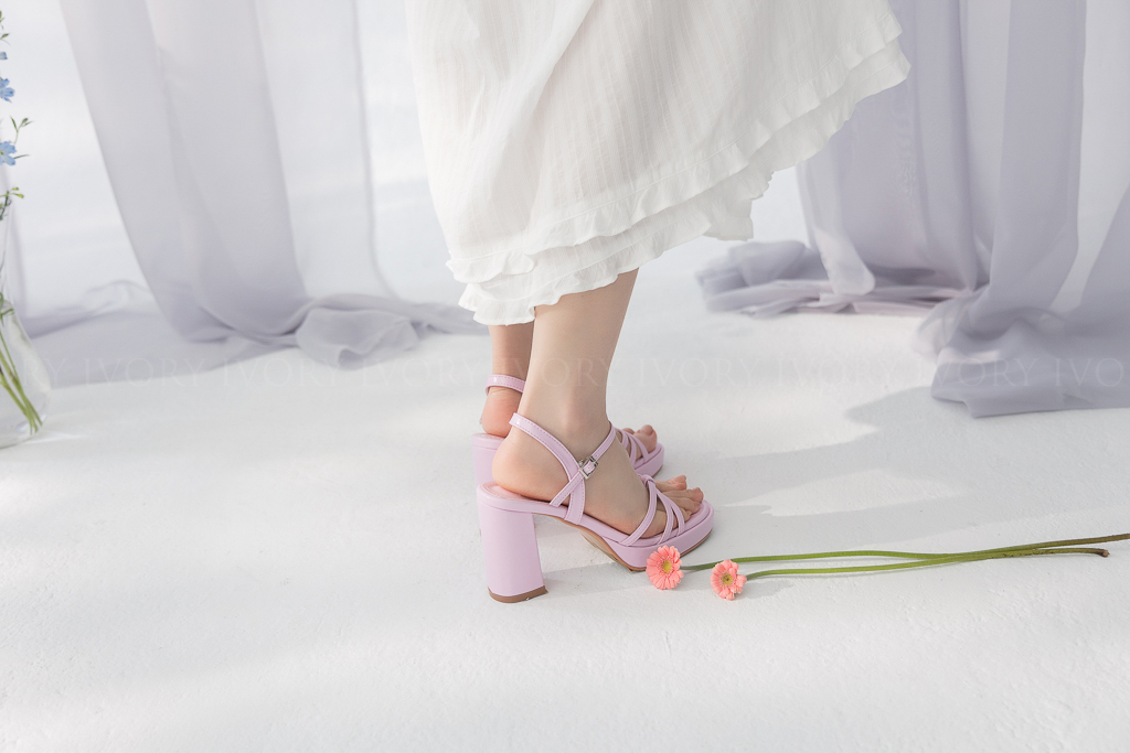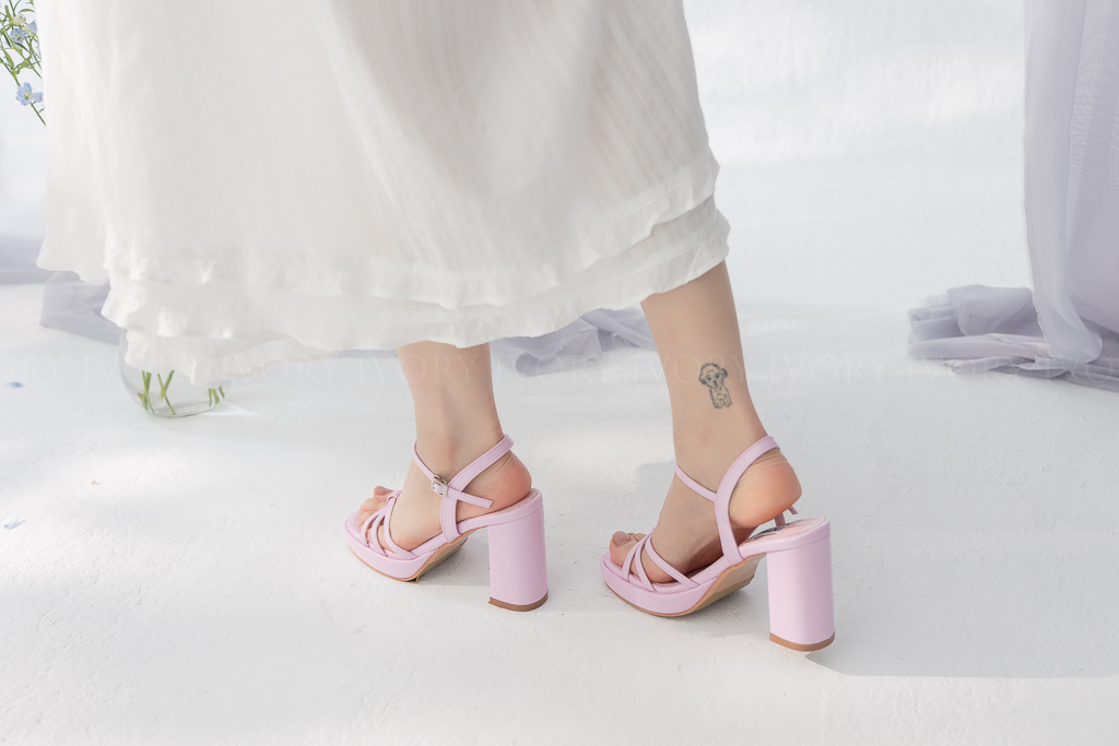 U57075超美粉色系交叉細帶粗跟涼鞋