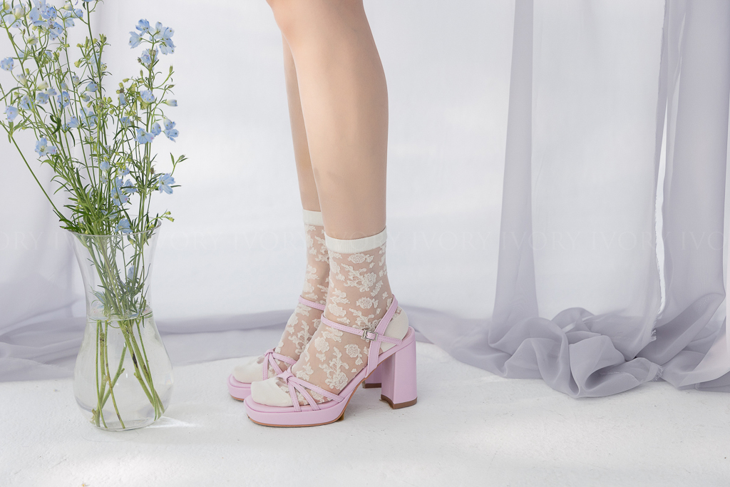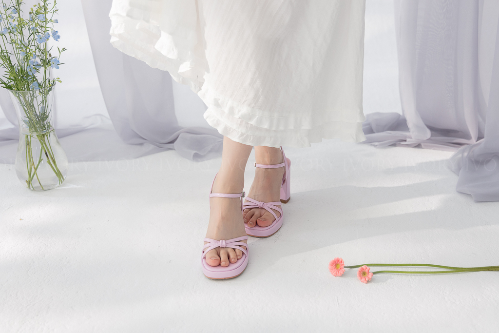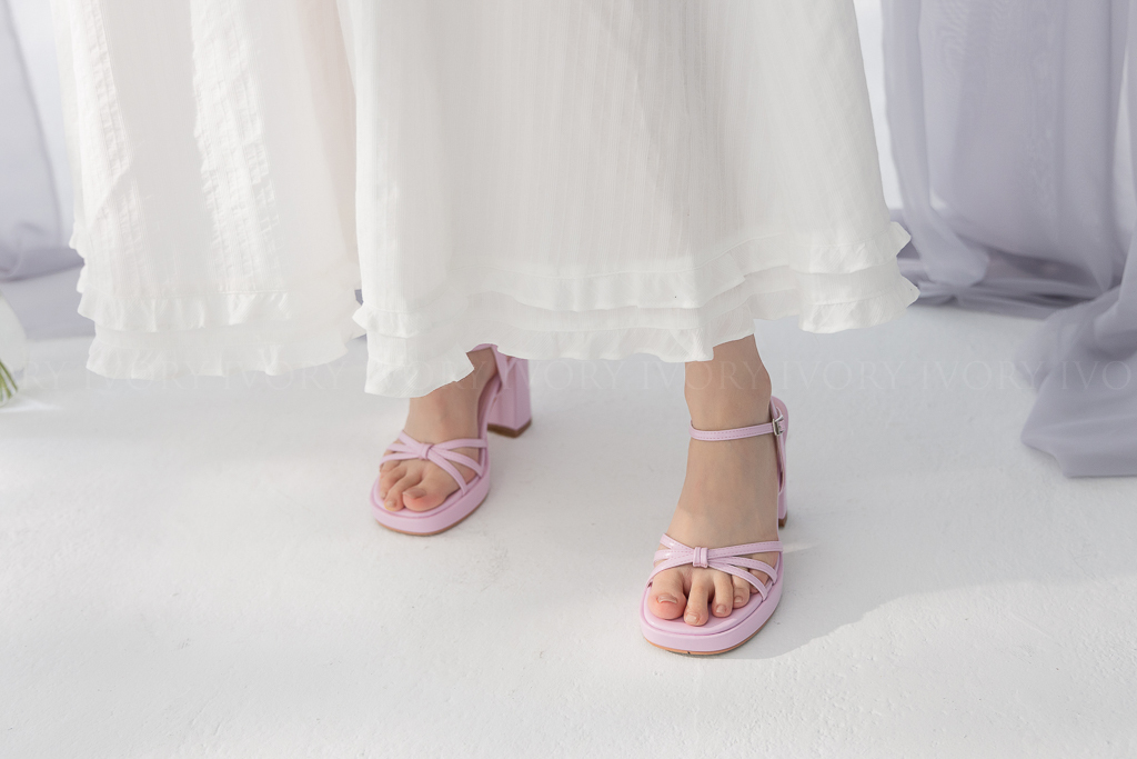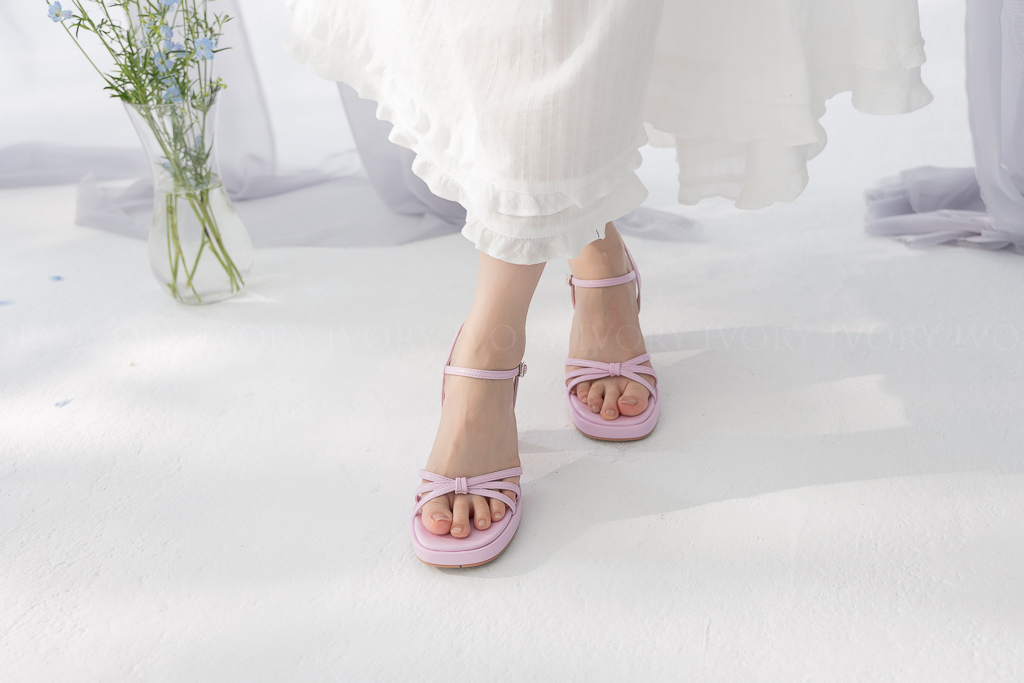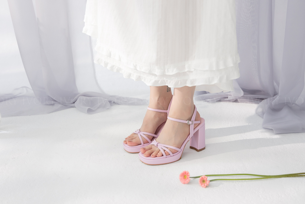 U57075超美粉色系交叉細帶粗跟涼鞋
