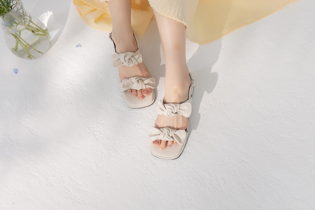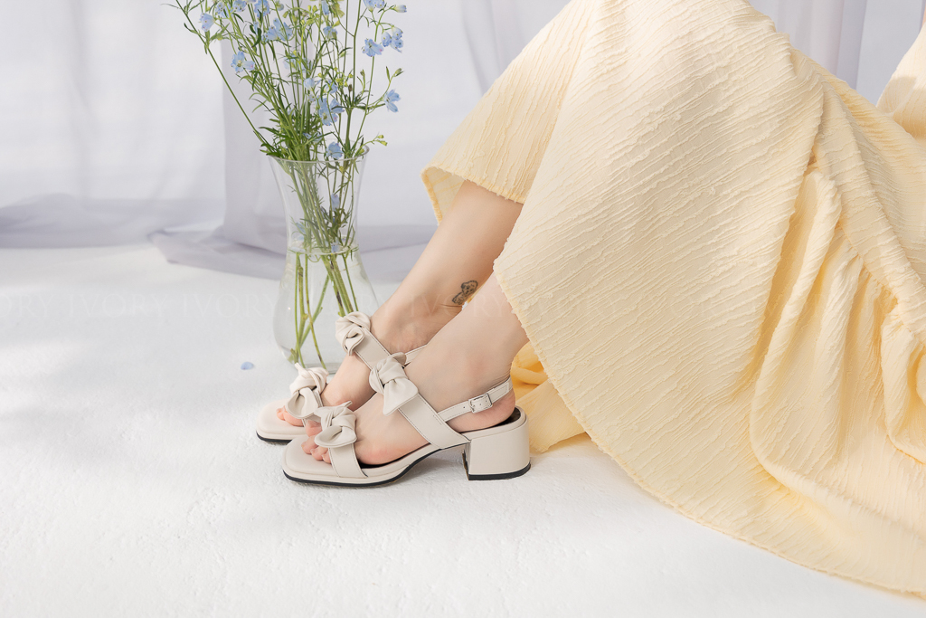 U57076超Q雙蝴蝶結方頭粗跟涼鞋
